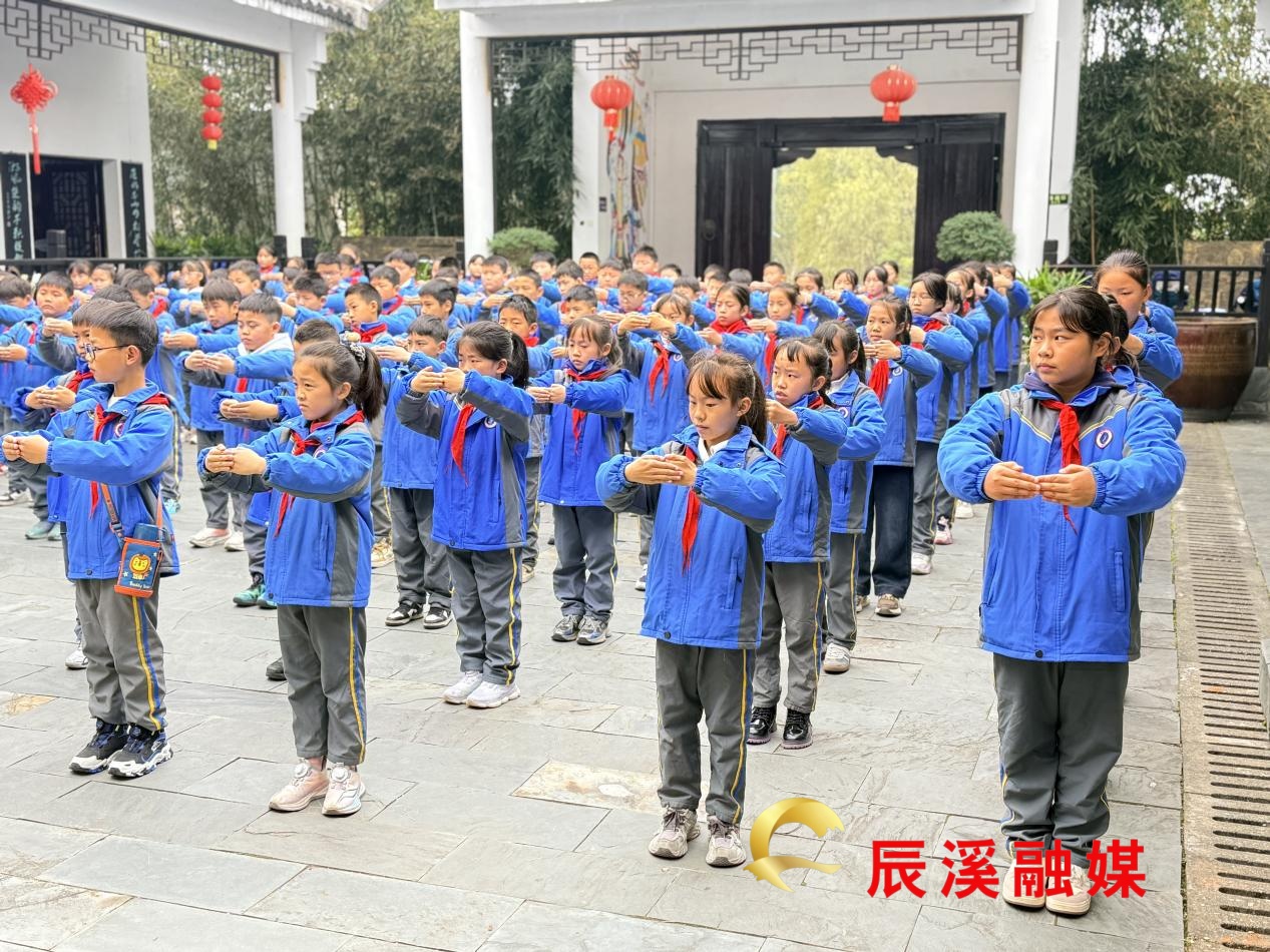 (辰溪县思源实验学校学生们在大酉书院明伦堂前行拜师礼)