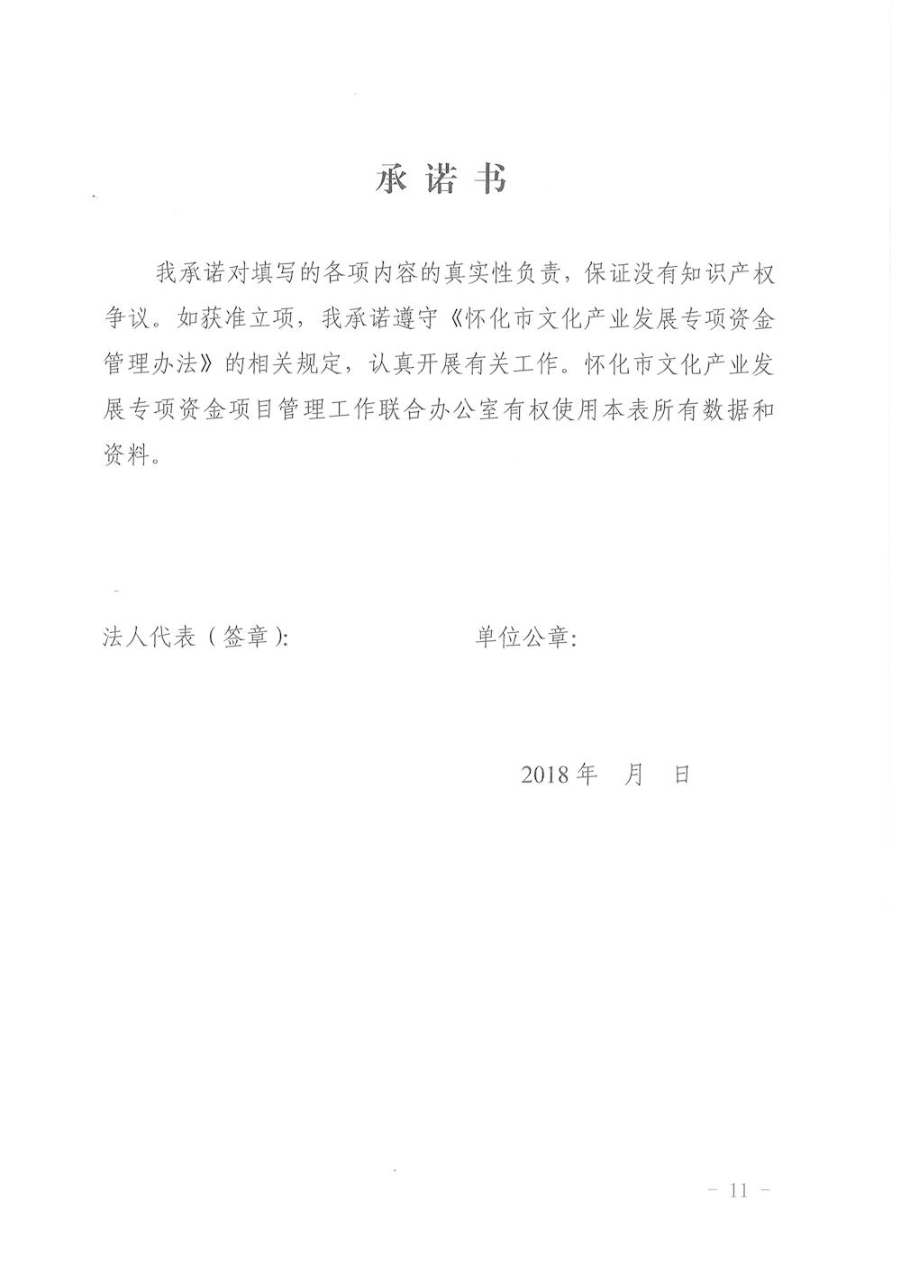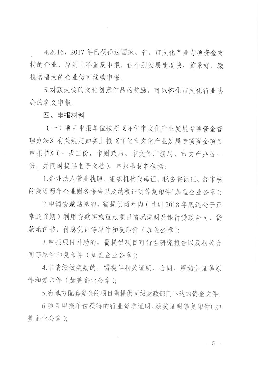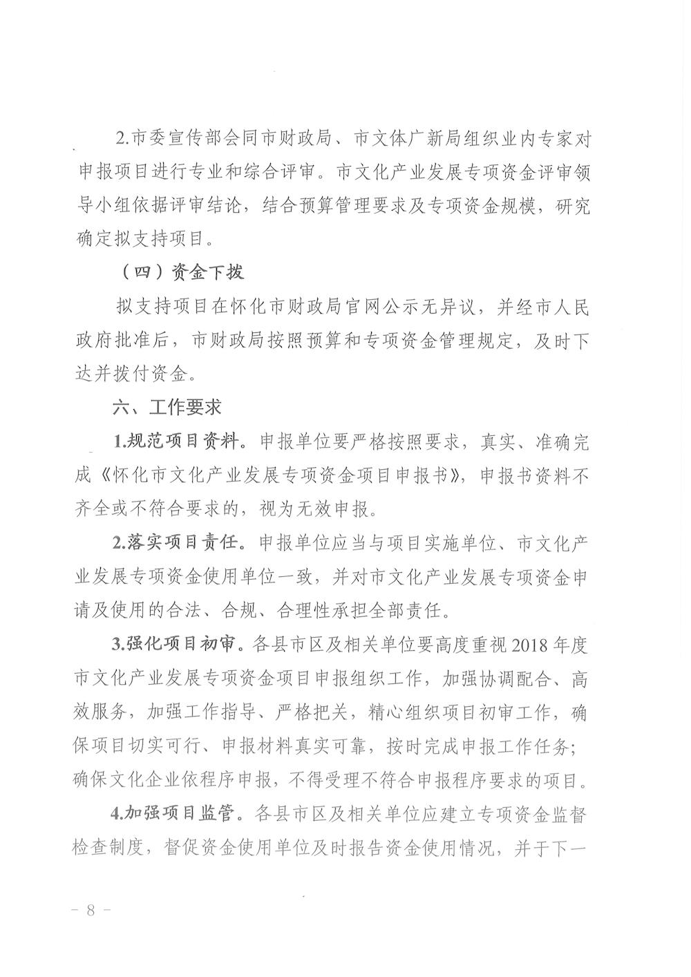 中共怀化市委宣传部怀化市财政局怀化市文体广电新闻出版局关于组织2018年度市文化产业发展专项 资金项目申报工作的通知