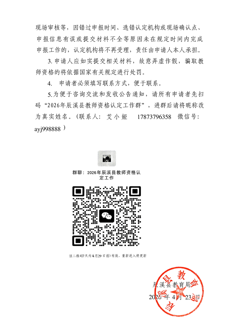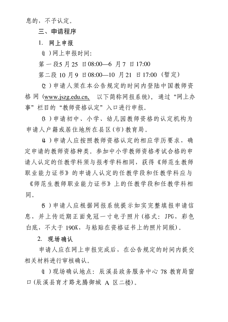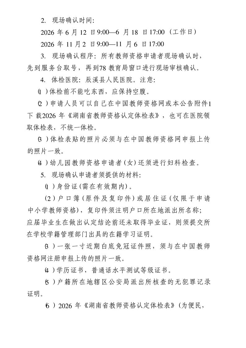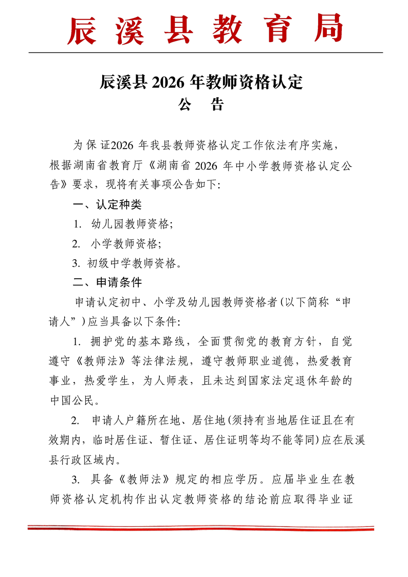 辰溪县2026年教师资格认定公告
