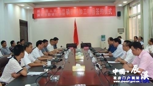 9月8日下午,辰溪县举行年产30万吨磷矿深加工项目签约仪式,县委常委、县人民政府常务副县长董伟代表县人民政府与深圳勤诚达集团有限公司代表俞家兴分别在项目协议上签字,标志着该项目即将进入实施阶段。