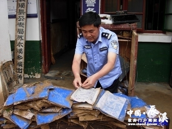 其实,谢申全自己也属重灾对象了,除了身穿的一套警服外,挂在墙上的几件像样衣服全被洪水冲走,手机亦进水报废,办公室里的档案资料也全被洪水浸泡。5月7日,当县公安局党委副书记、政委胡思莲专程前来慰问后,面对领导关切地询问,谢申全憨厚地笑着说:“营救被困村民是我作为一位公安民警所应该做的,百姓的安危我有责,唯一没做好的是公安档案没有抢出来……”