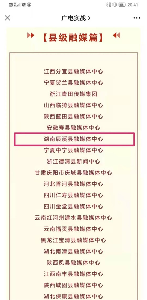 2021《全国广电媒体融合实战案例蓝皮书》一书中记载了辰溪县融媒体中心的案例宝典,对全国市、县、区广电融媒深化改革具有指导和借鉴意义。