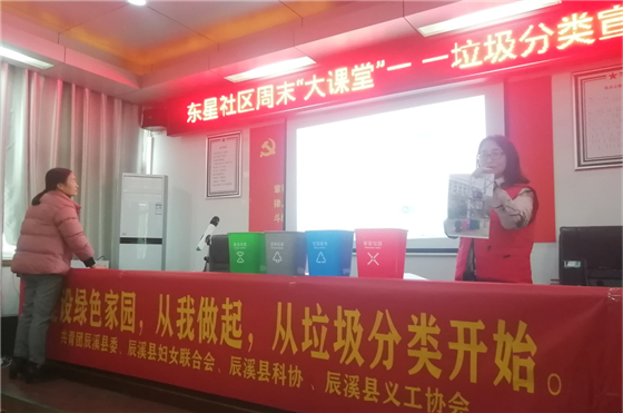 为进一步助力我县乡村振兴,推动辖区垃圾分类工作走深走实,让更多的群众了解垃圾分类,并参与到垃圾分类的实践中来,近日,辰溪县义工协会党支部联合辰溪县垃圾分类领导小组、团县委、妇联、科协走进辰阳镇东星社区开展垃圾分类科普课堂及“建设绿色家园,从我做起,从垃圾分类开始”宣传活动。