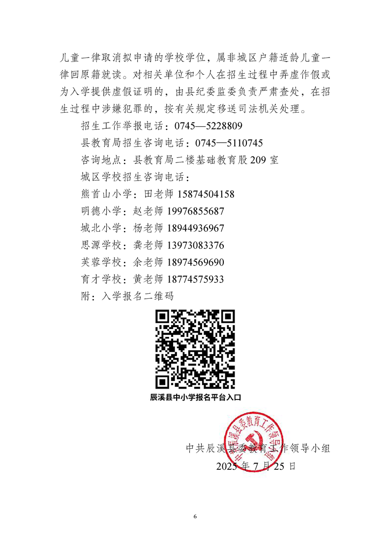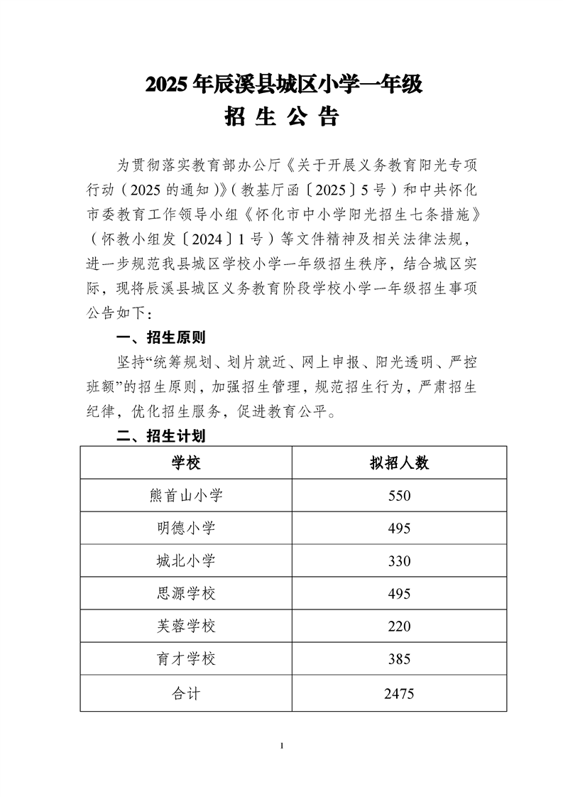 2025年辰溪县城区小学一年级招生公告