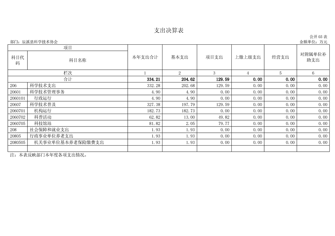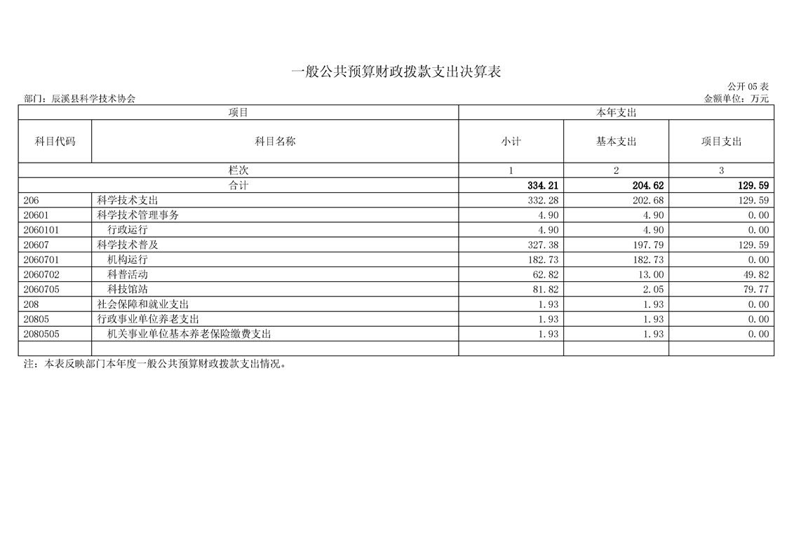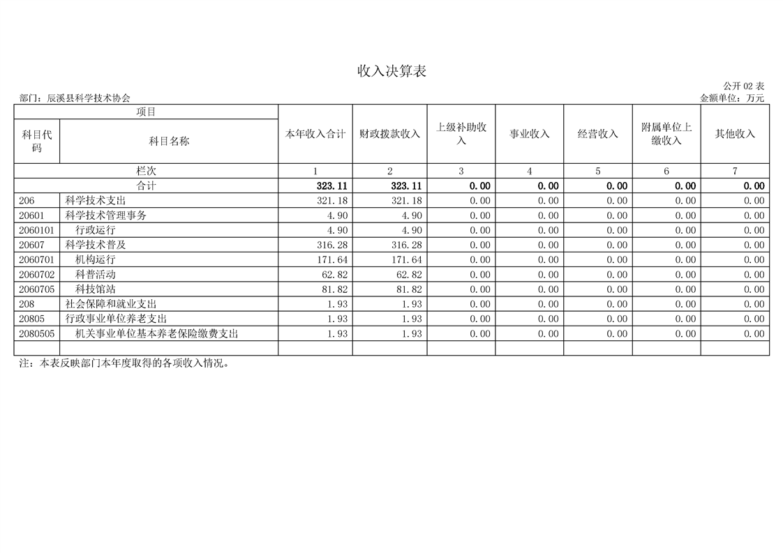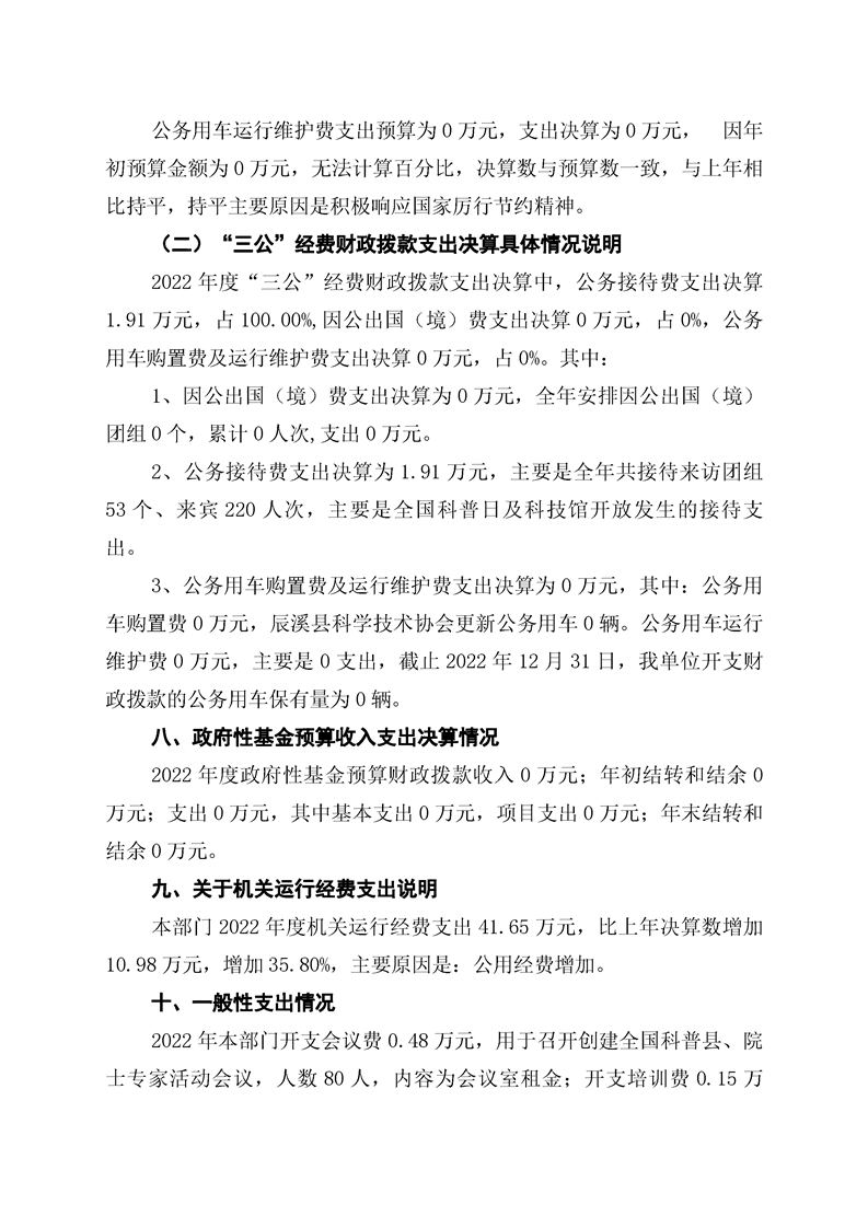 2022年度辰溪县科学技术协会部门决算