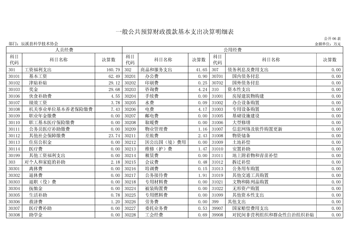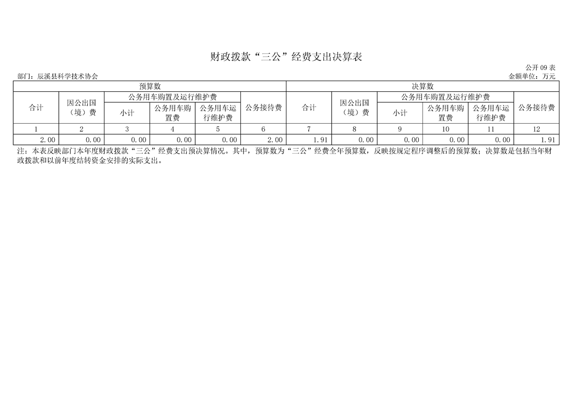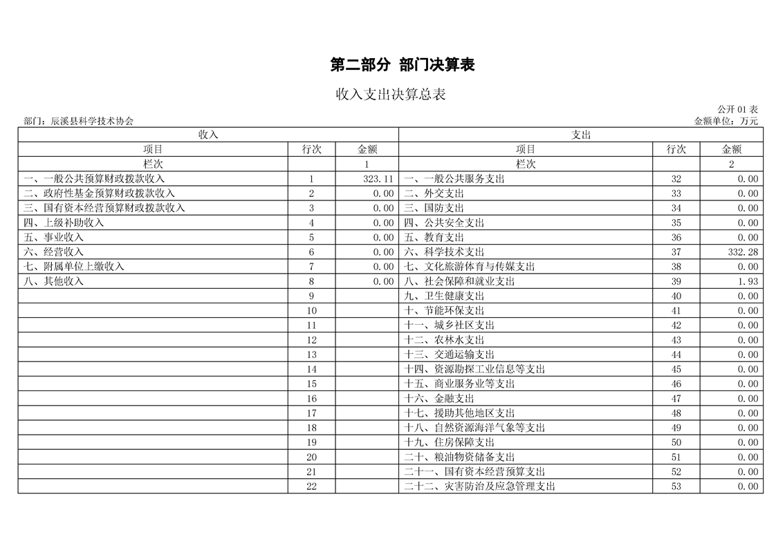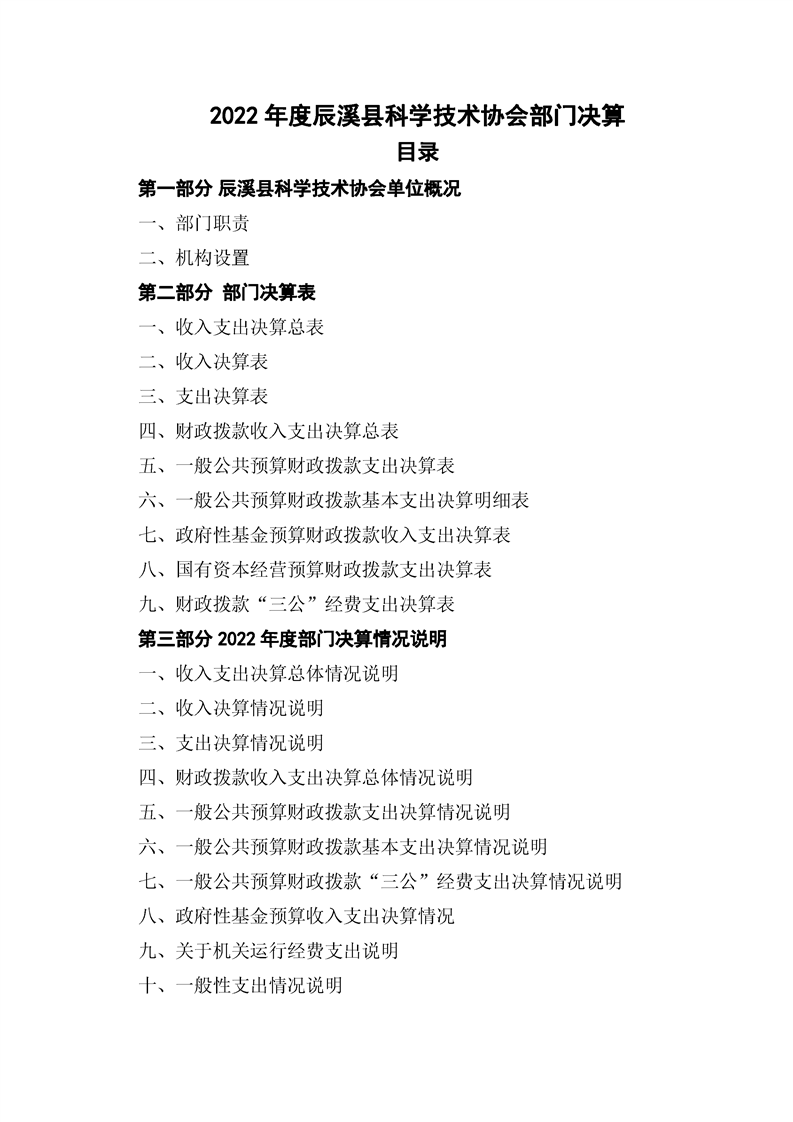 2022年度辰溪县科学技术协会部门决算