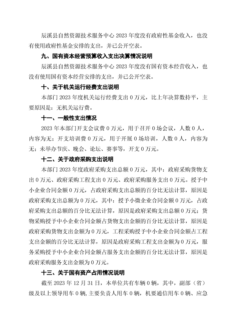 辰溪县自然资源技术服务中心2023年部门决算公开说明