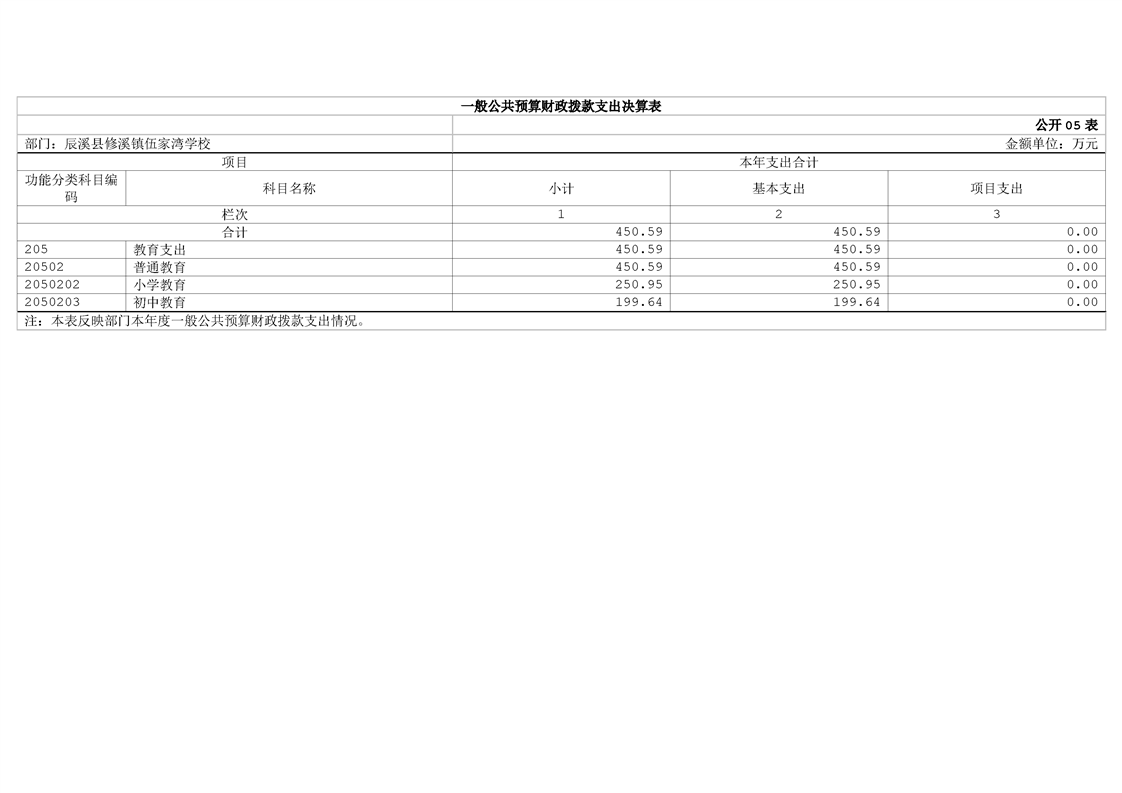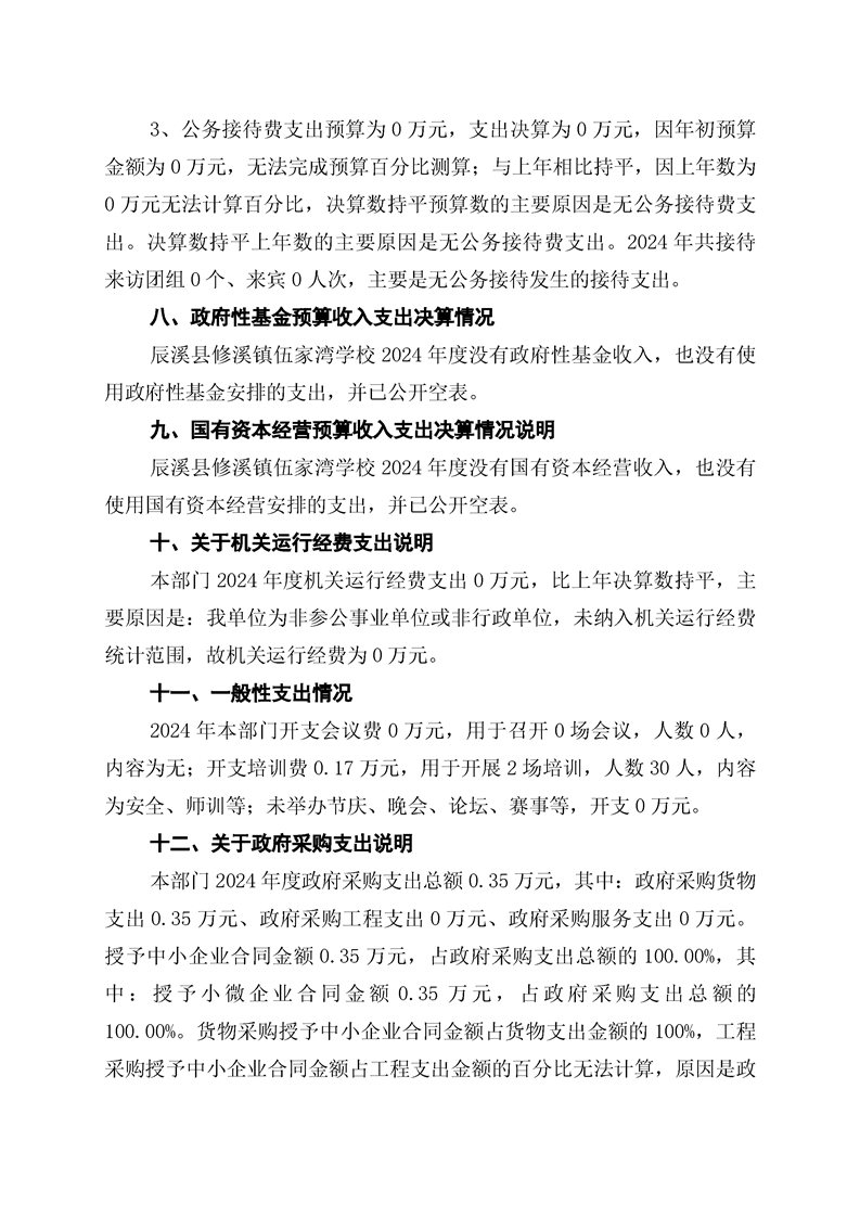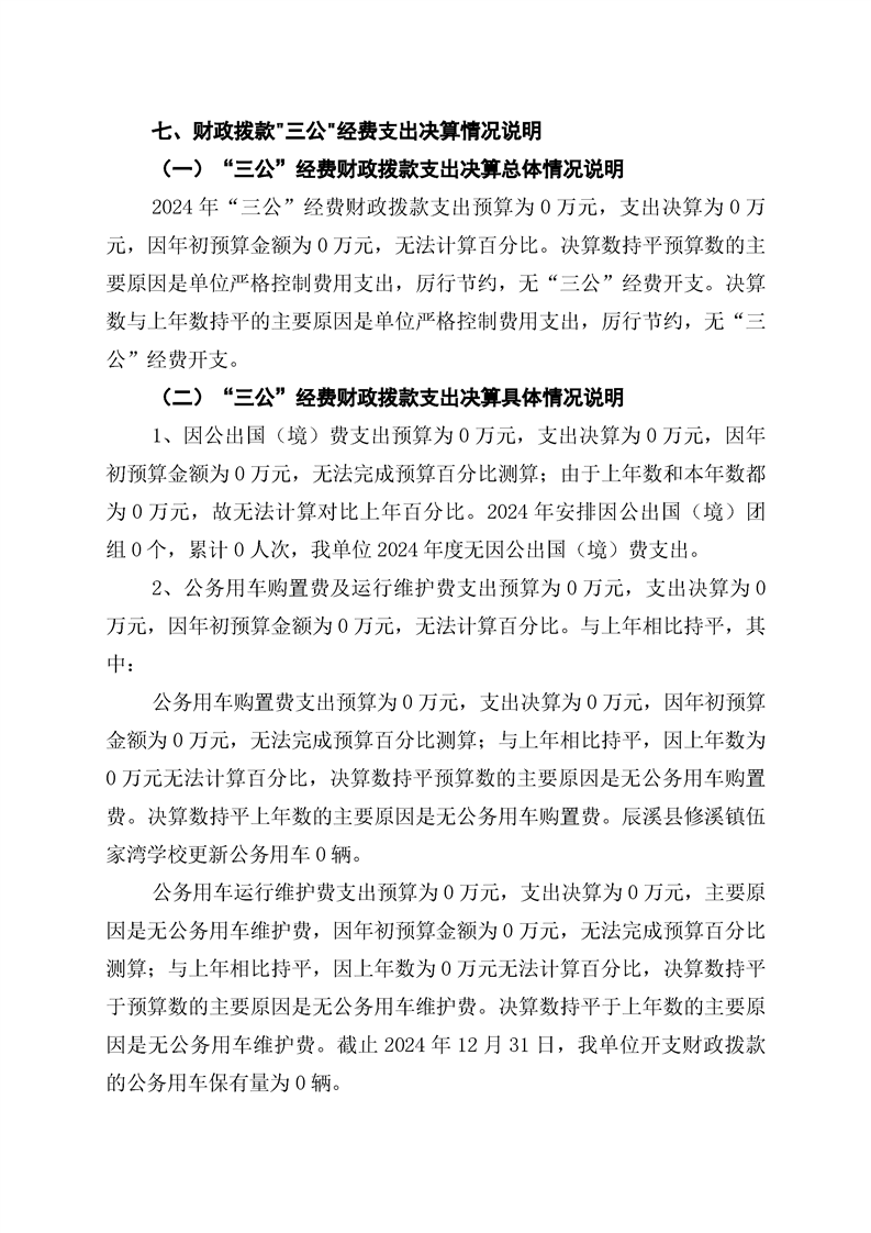 辰溪县修溪镇伍家湾学校2024年部门决算公开说明