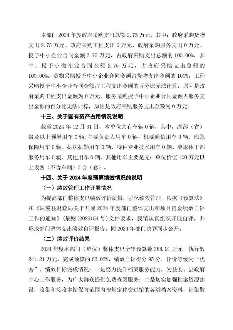 2024年度辰溪县档案馆部门整体支出绩效自评报告.docx