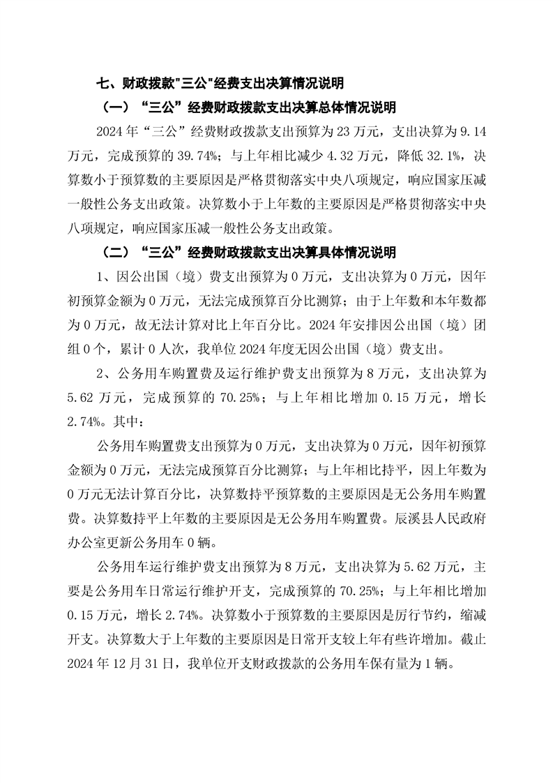 辰溪县人民政府办公室2024年部门整体支出绩效自评报告.docx