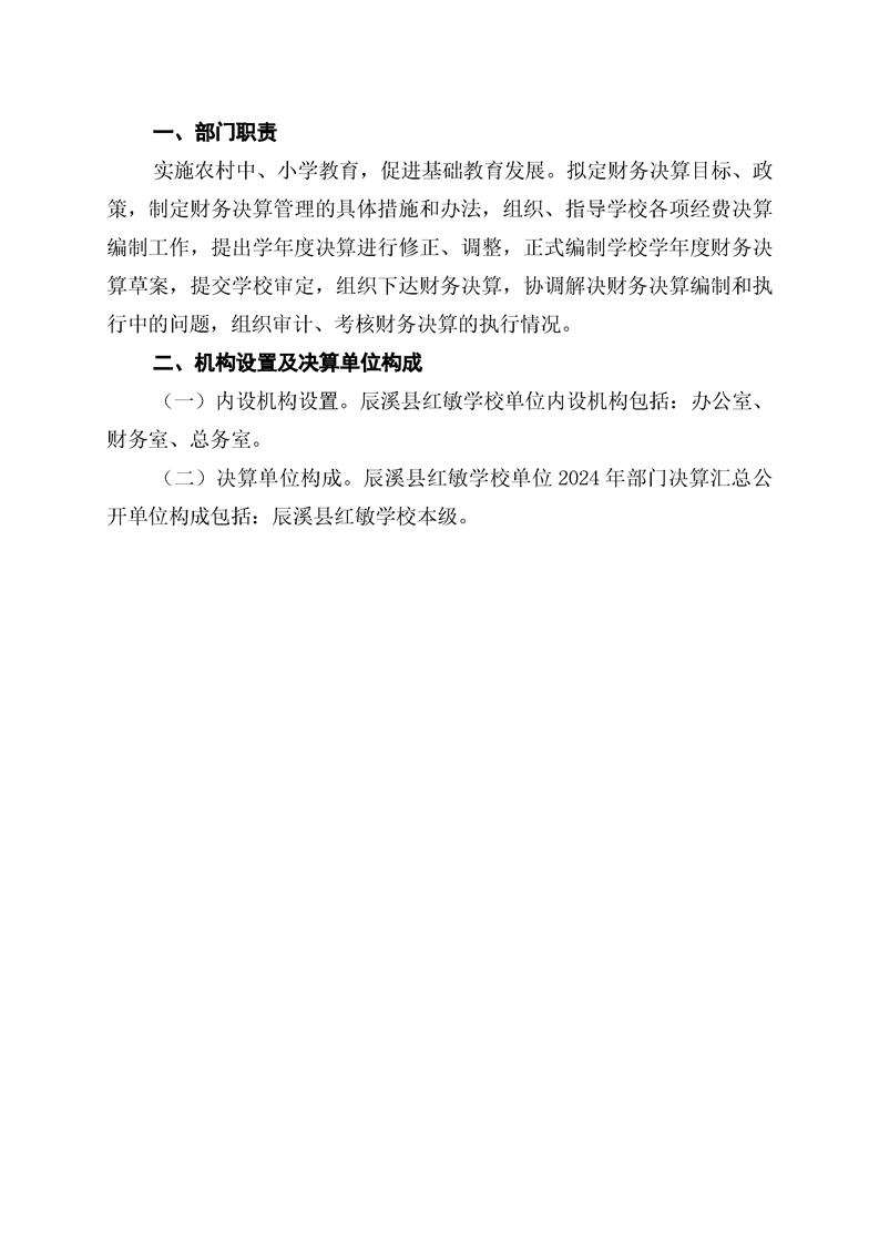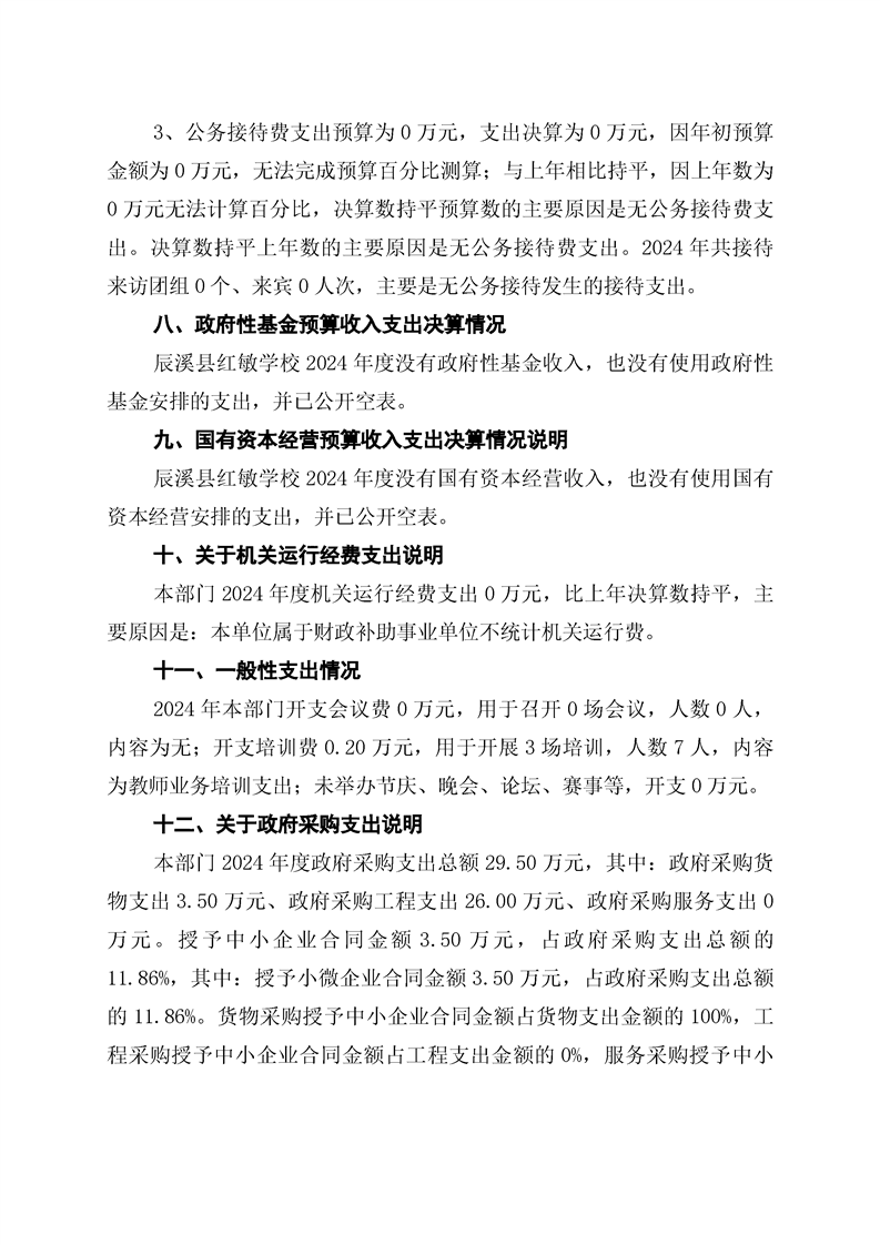 2024年度辰溪县红敏学校部门整体支出绩效评价自评报告.doc