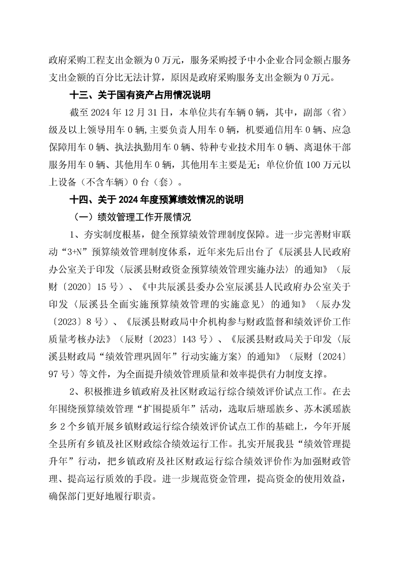 2024年度辰溪县财政局部门整体支出绩效自评报告.docx