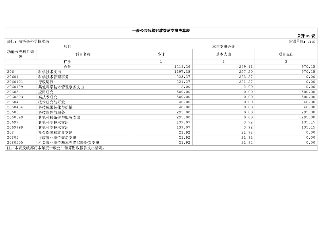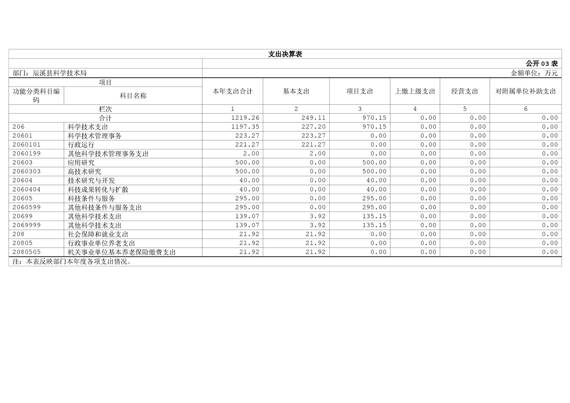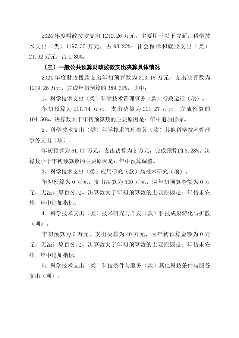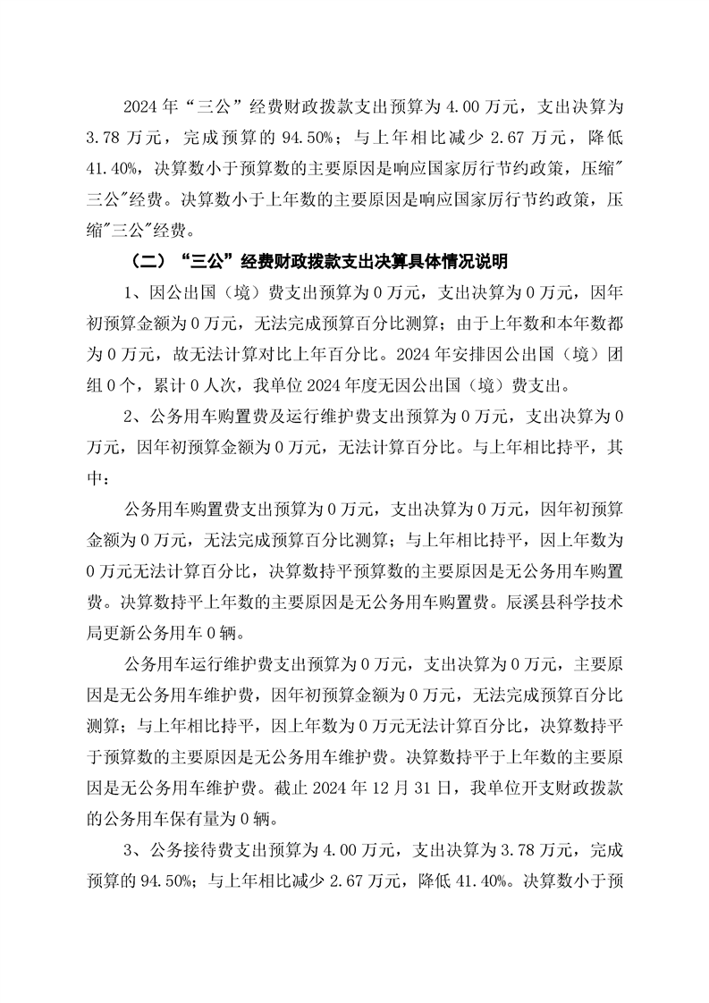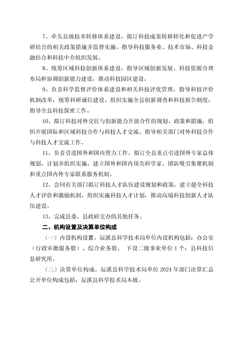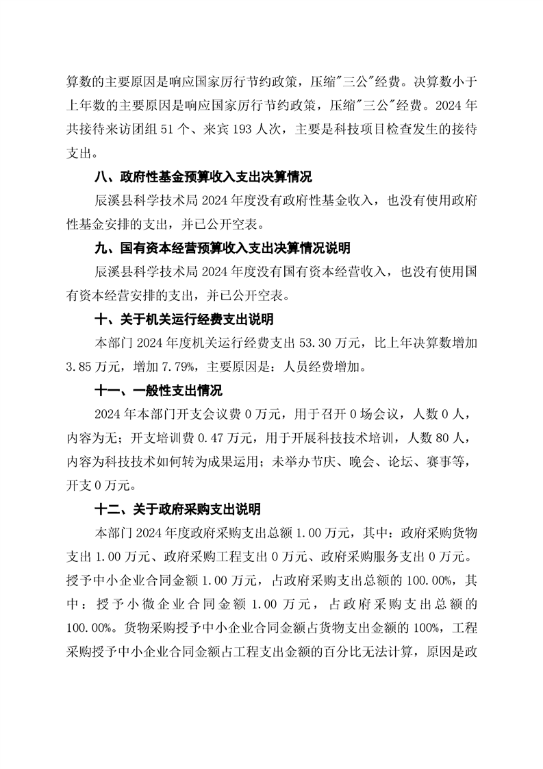 辰溪县科学技术局2024年部门决算公开说明