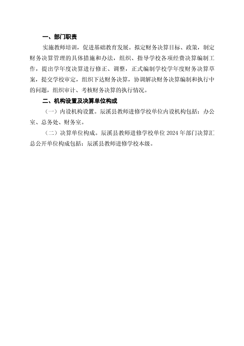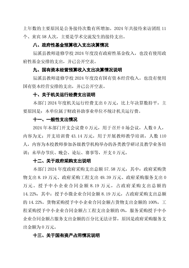 辰溪县教师进修学校2024年部门决算公开说明