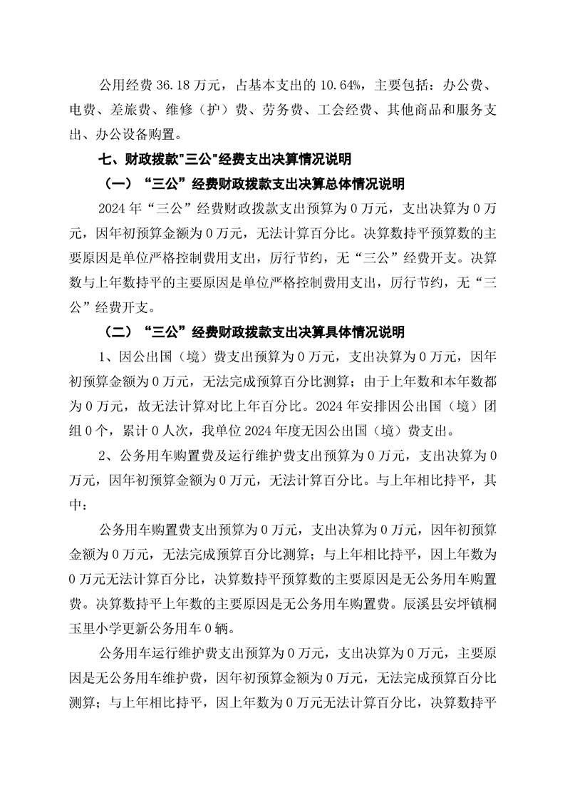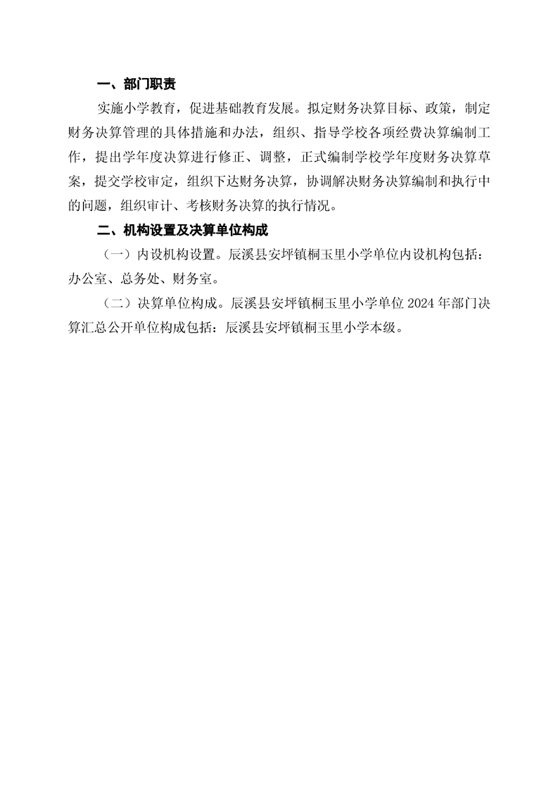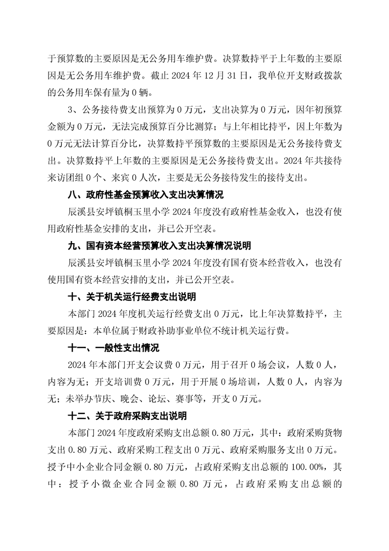 辰溪县安坪镇桐玉里小学2024年部门决算公开说明