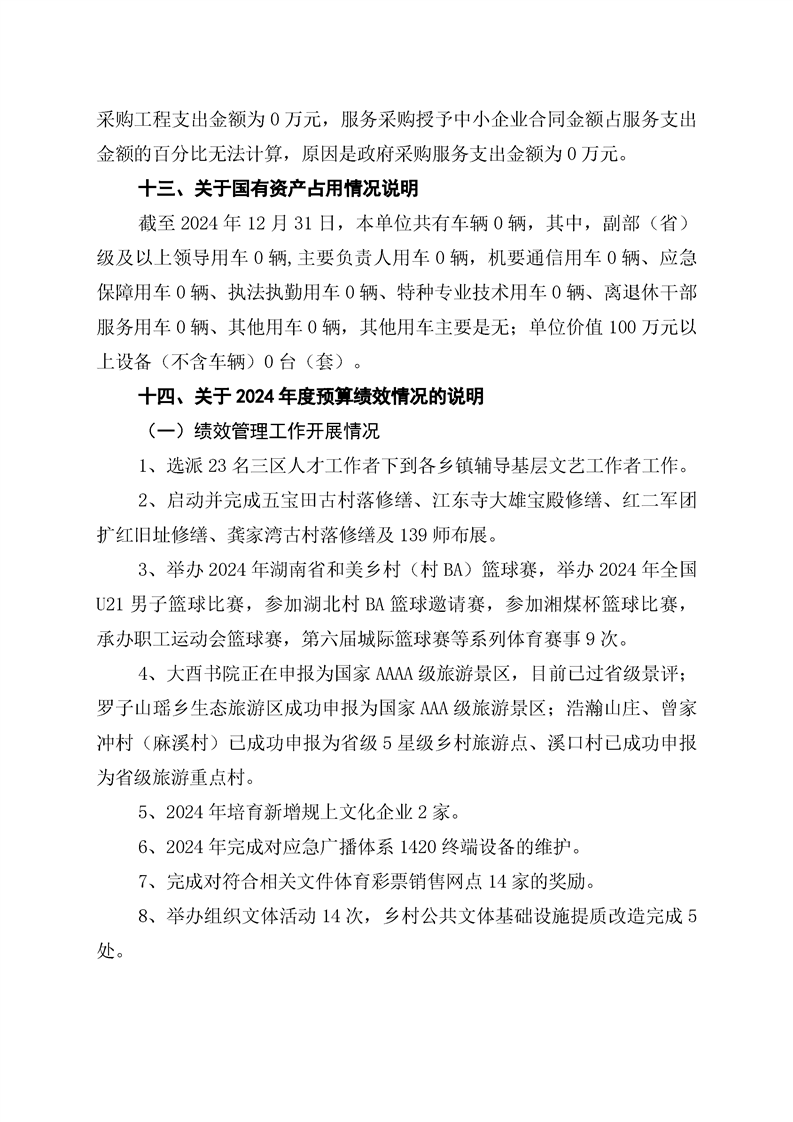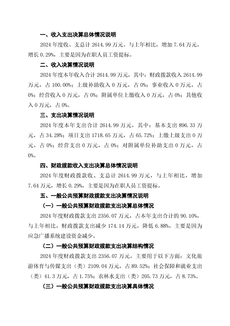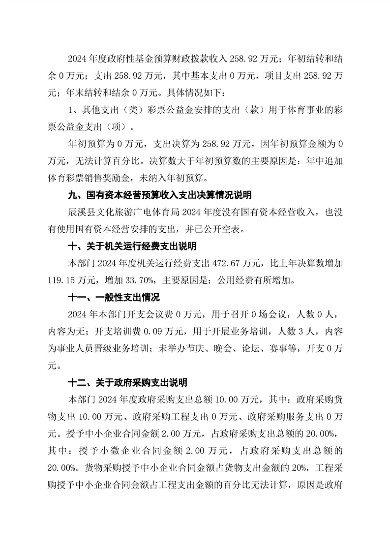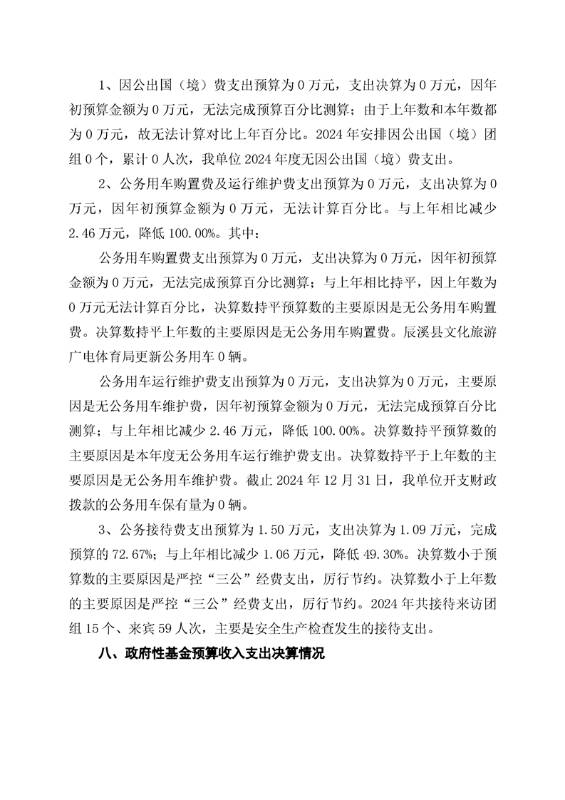 辰溪县文化旅游广电体育局2024年部门决算公开说明