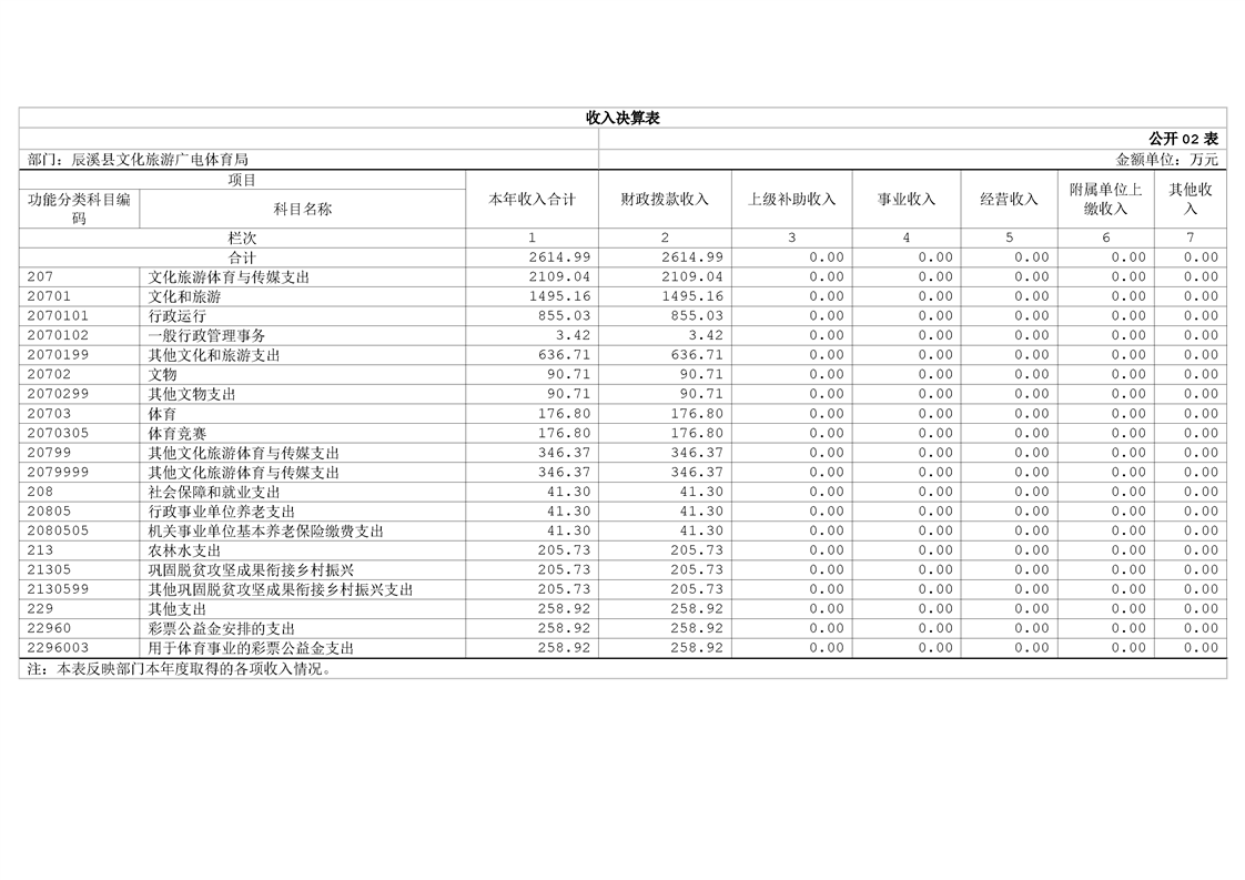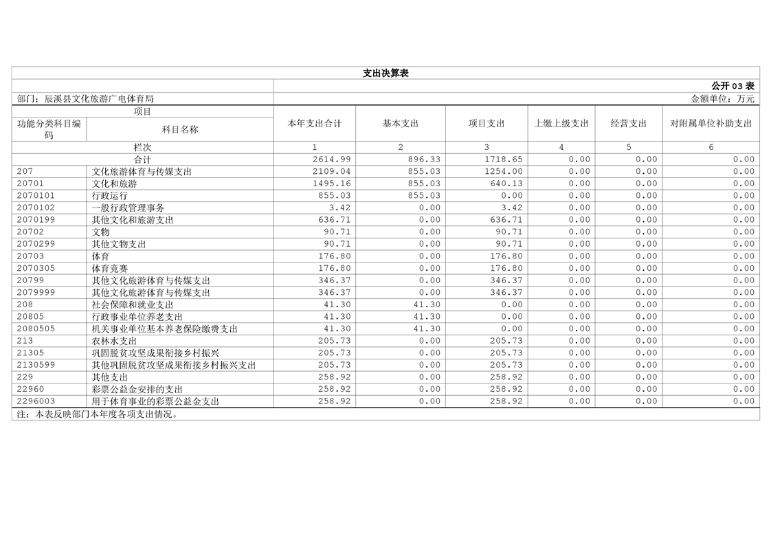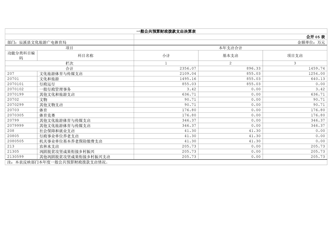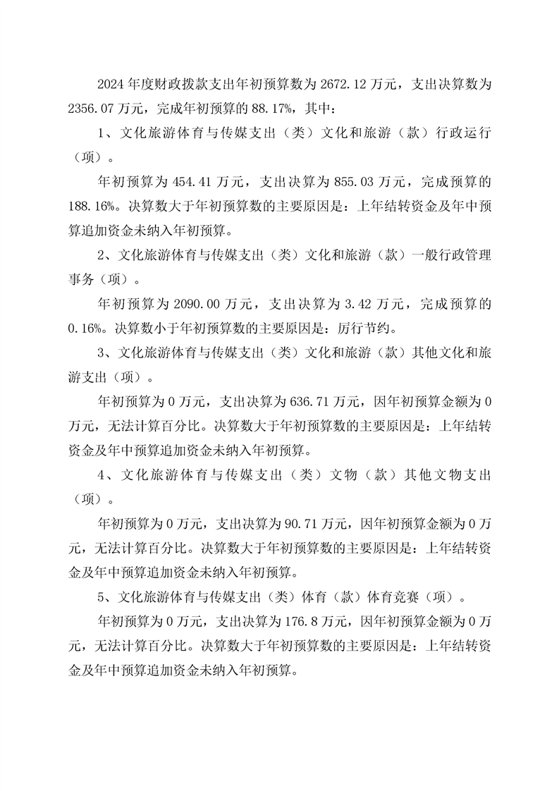 辰溪县文化旅游广电体育局2024年部门决算公开说明