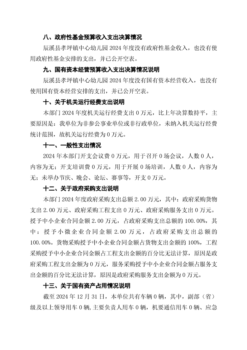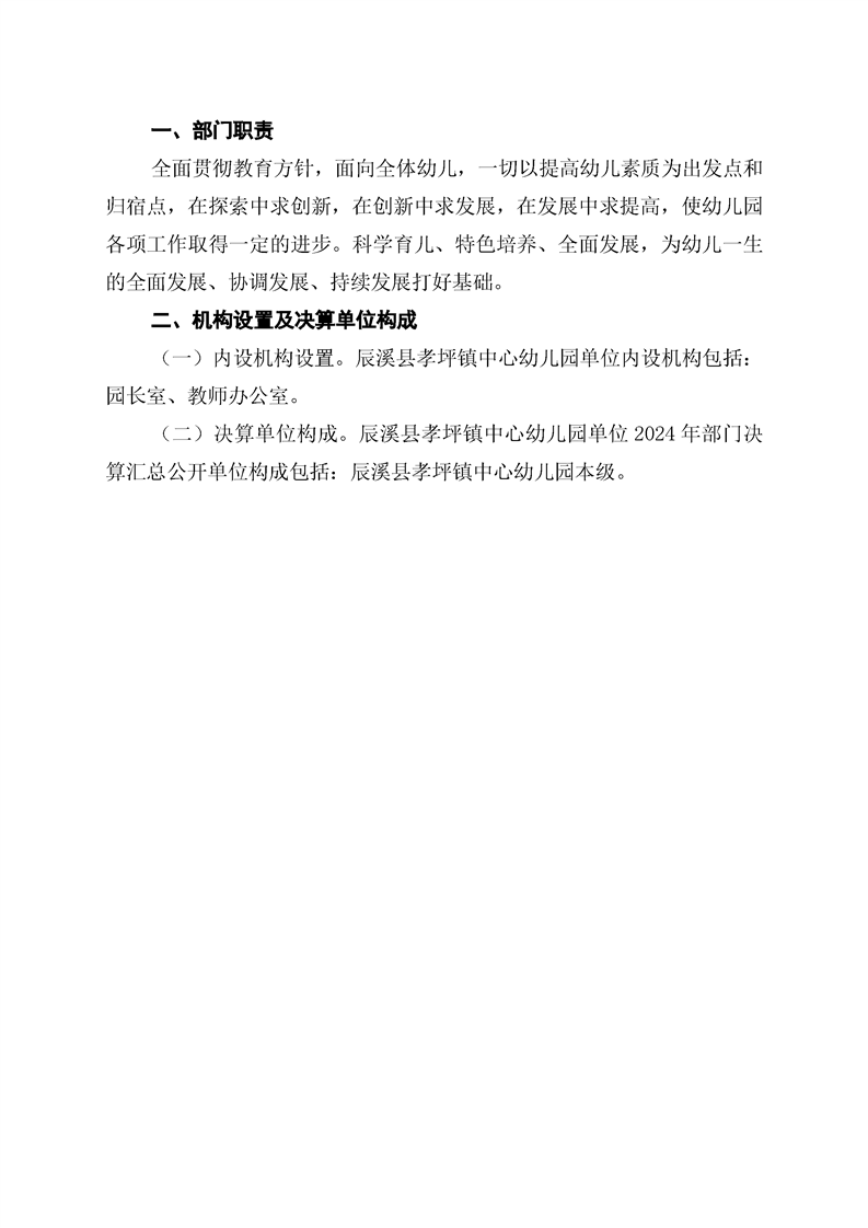 辰溪县孝坪镇中心幼儿园2024年部门决算公开说明