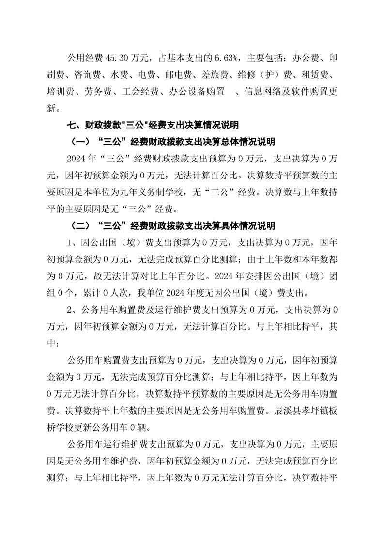 辰溪县孝坪镇板桥学校2024年部门决算公开说明