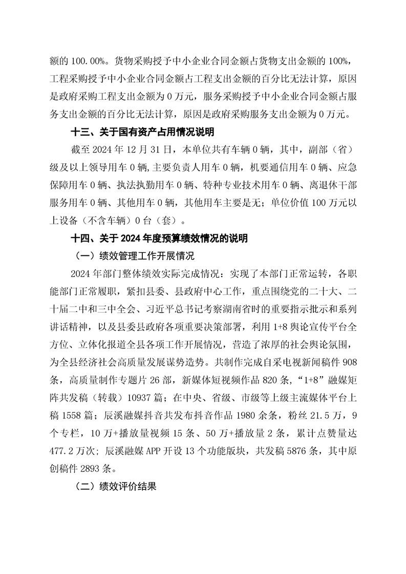 2024年度辰溪县融媒体中心部门整体支出绩效评价自评报告.docx