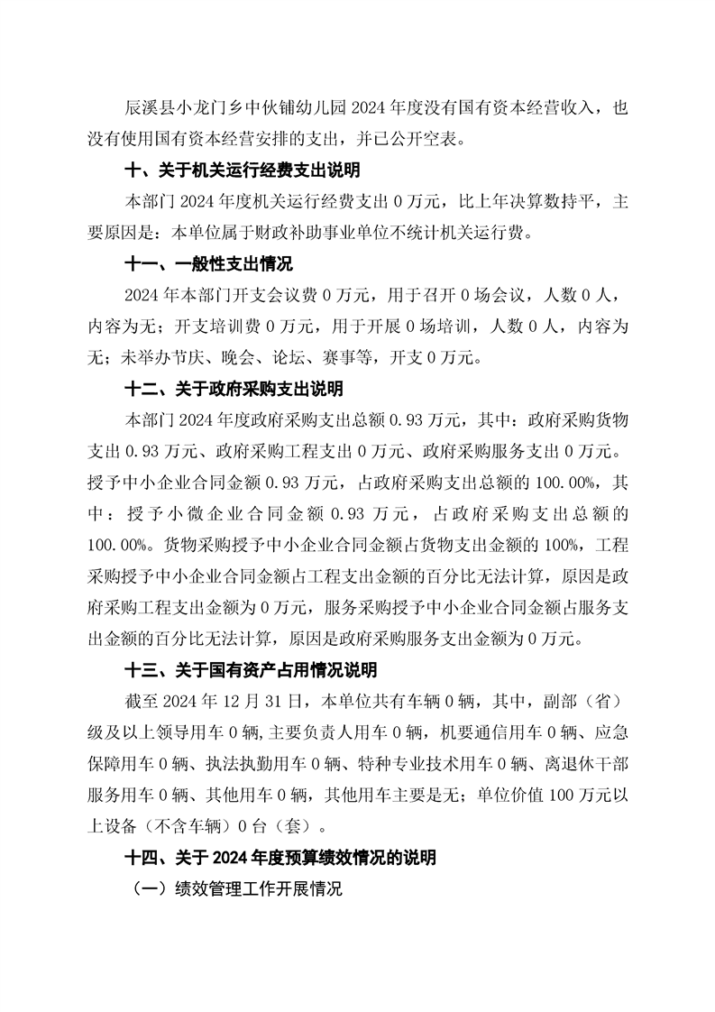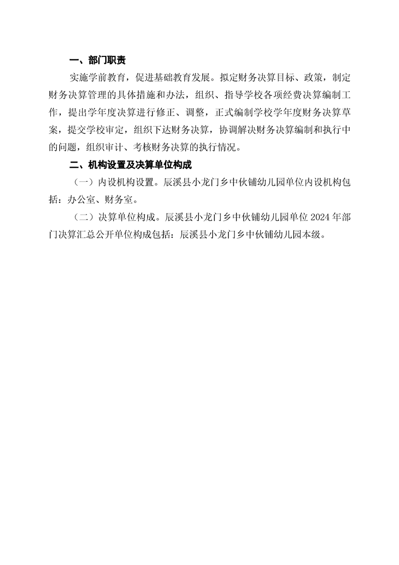 辰溪县小龙门乡中伙铺幼儿园2024年部门决算公开说明