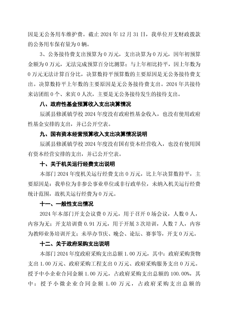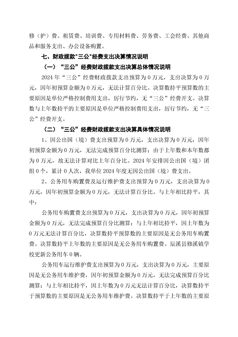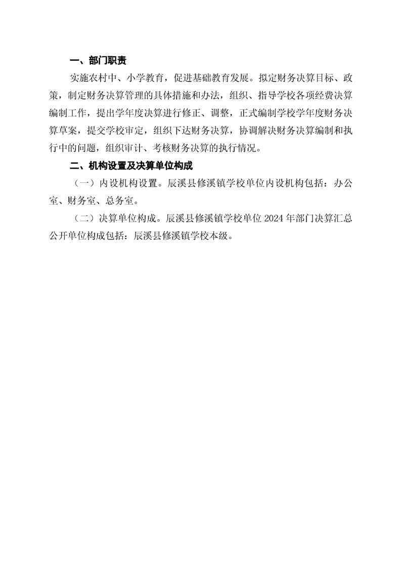 辰溪县修溪镇学校2024年部门整体绩效自评报告及自评表.docx