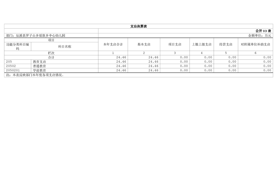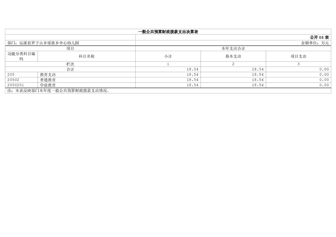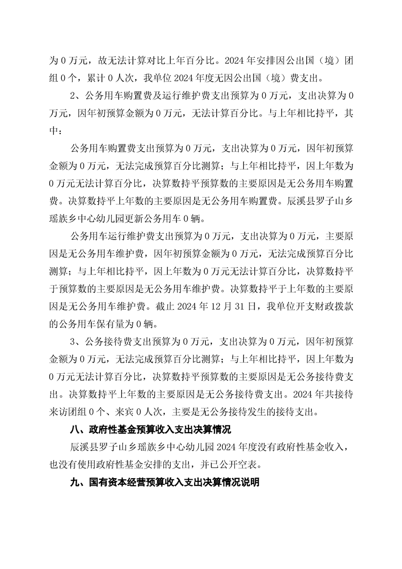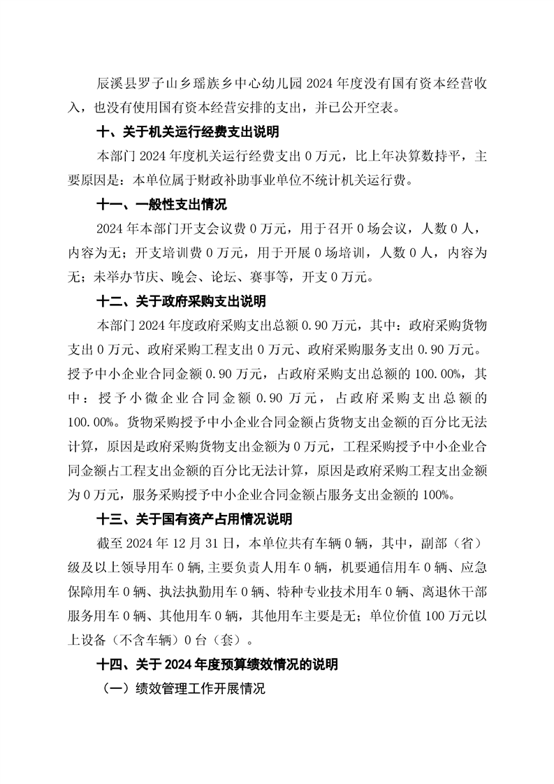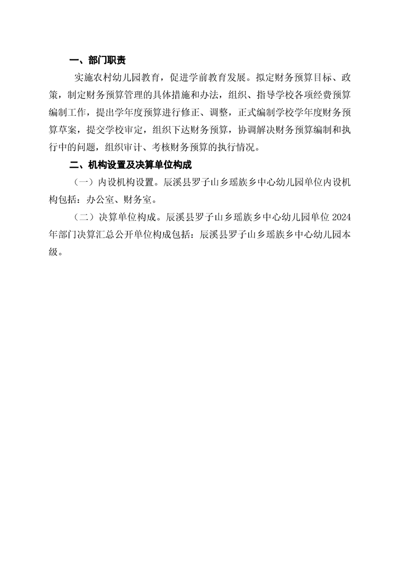 辰溪县罗子山乡瑶族乡中心幼儿园2024年部门决算公开说明