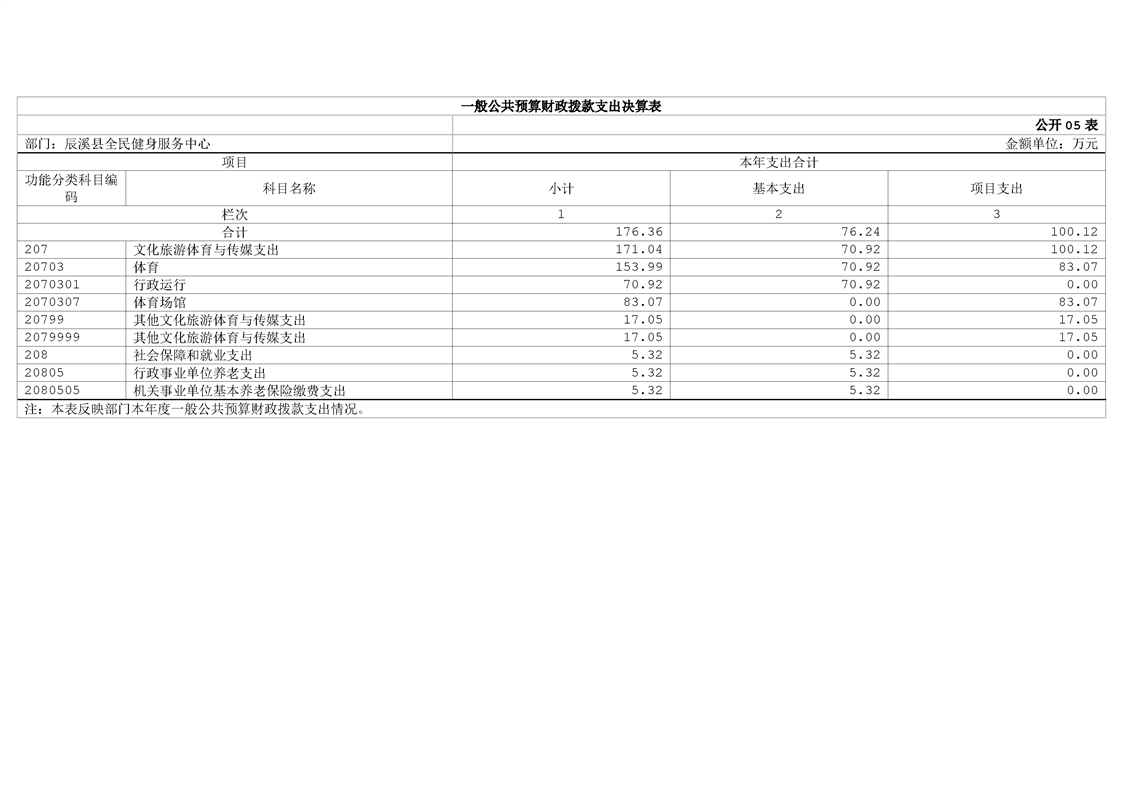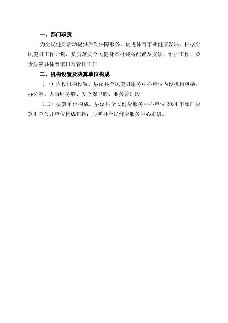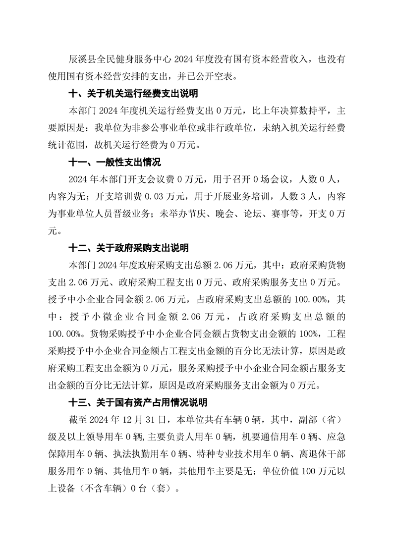 辰溪县全民健身服务中心2024年部门决算公开说明
