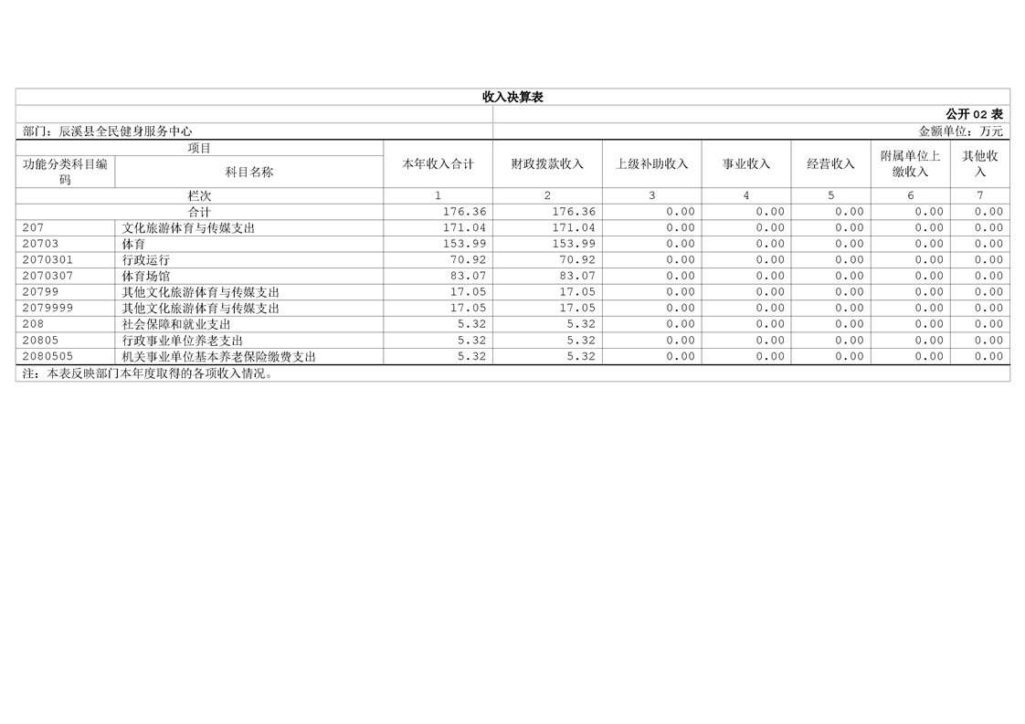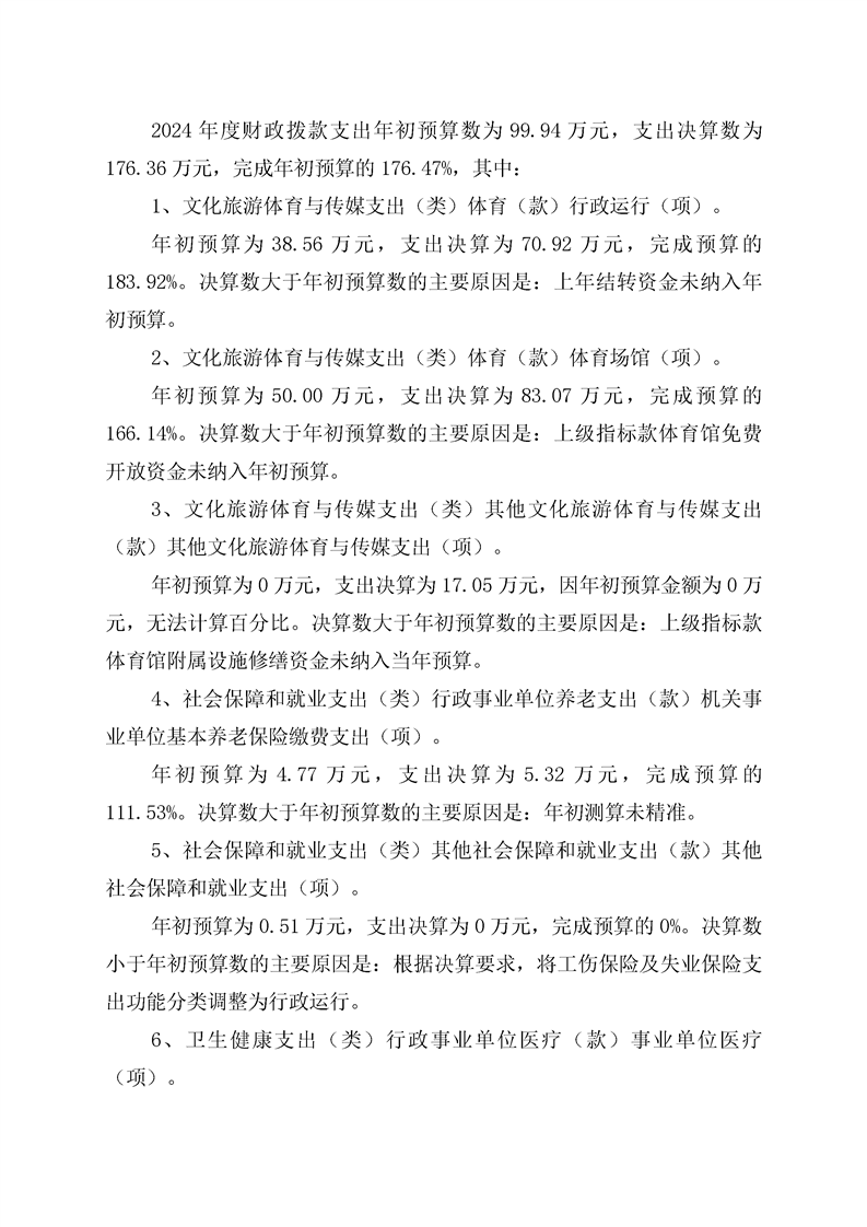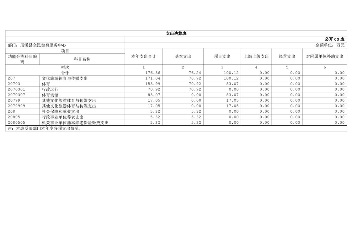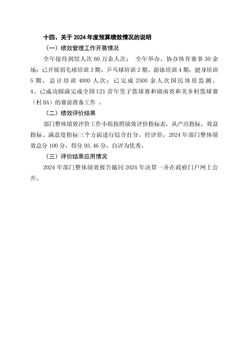 辰溪县全民健身服务中心2024年部门决算公开说明