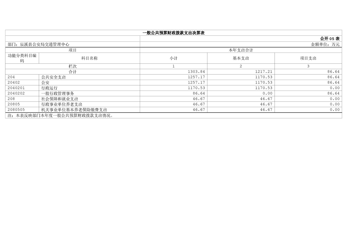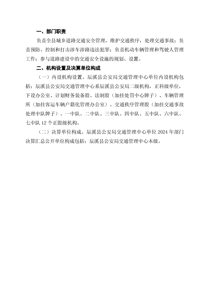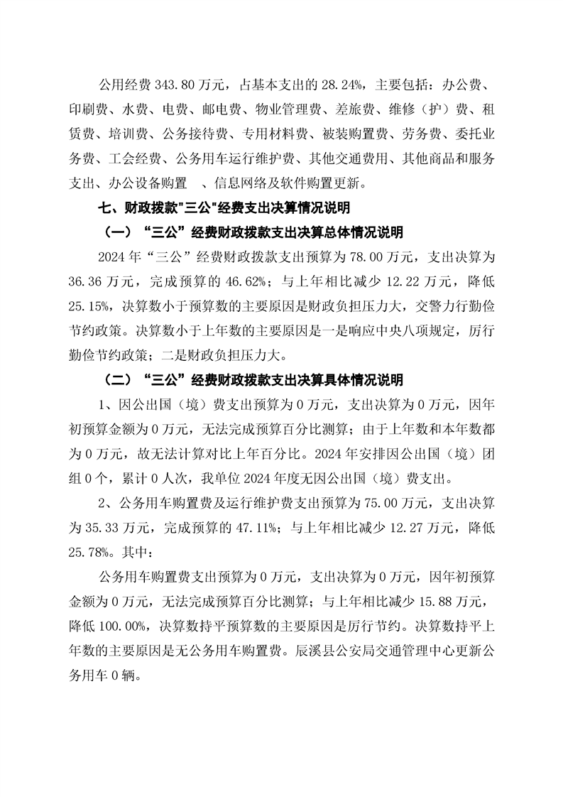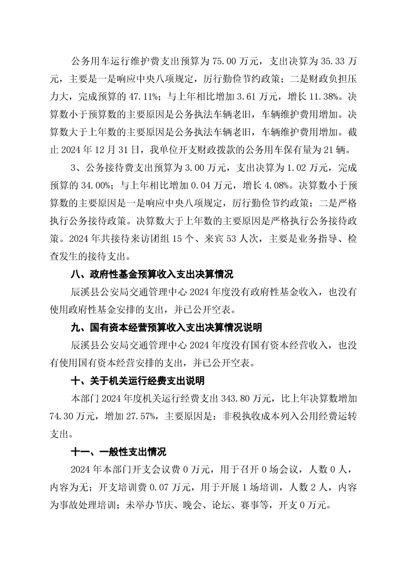 辰溪县公安局交通管理中心2024年部门决算公开说明