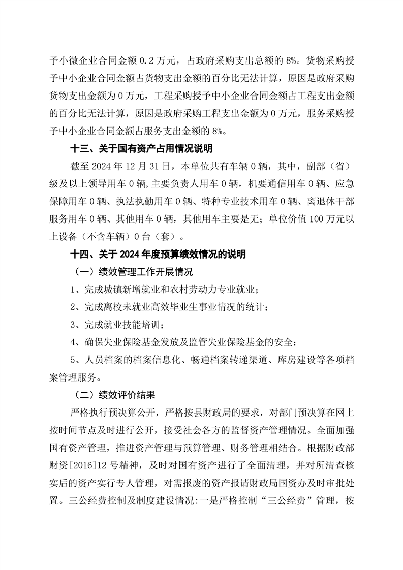 2024年度辰溪县就业服务中心部门整体支出绩效自评报告.docx