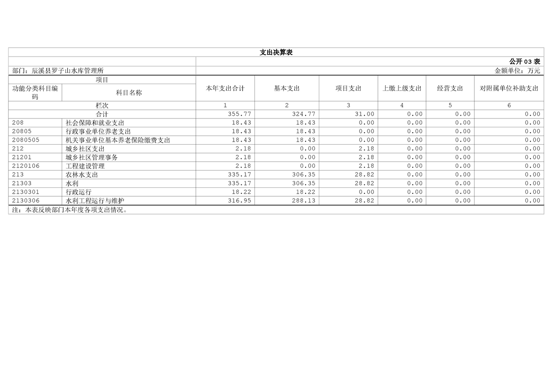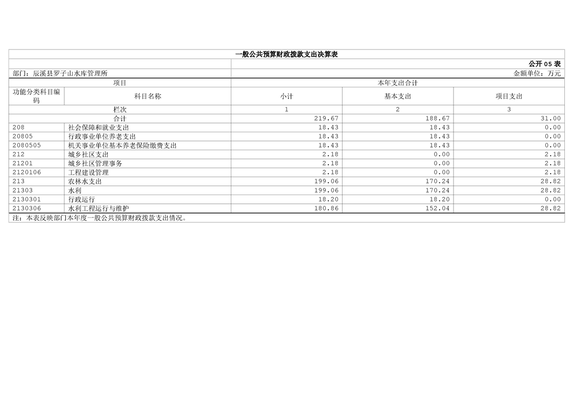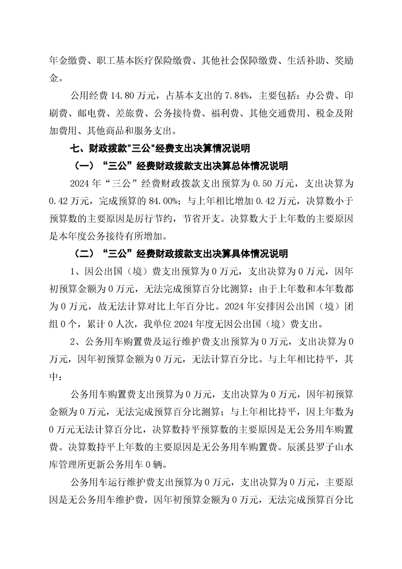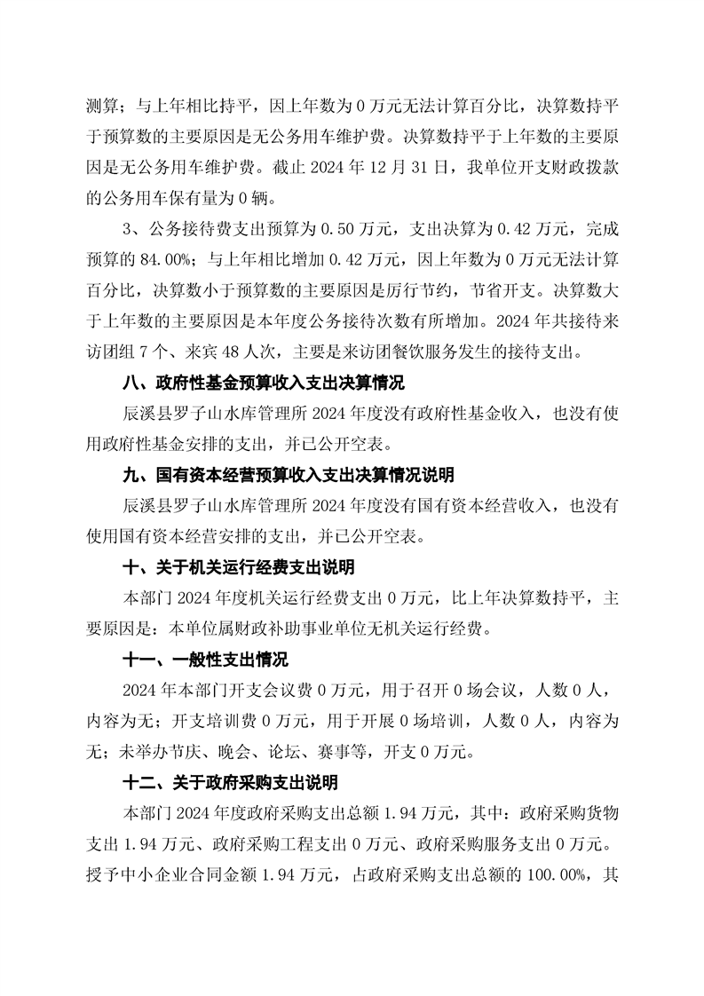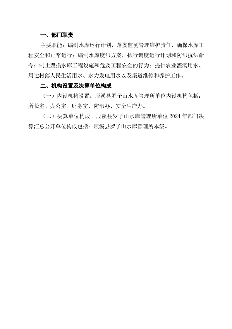 辰溪县罗子山水库管理所2024年部门决算公开说明