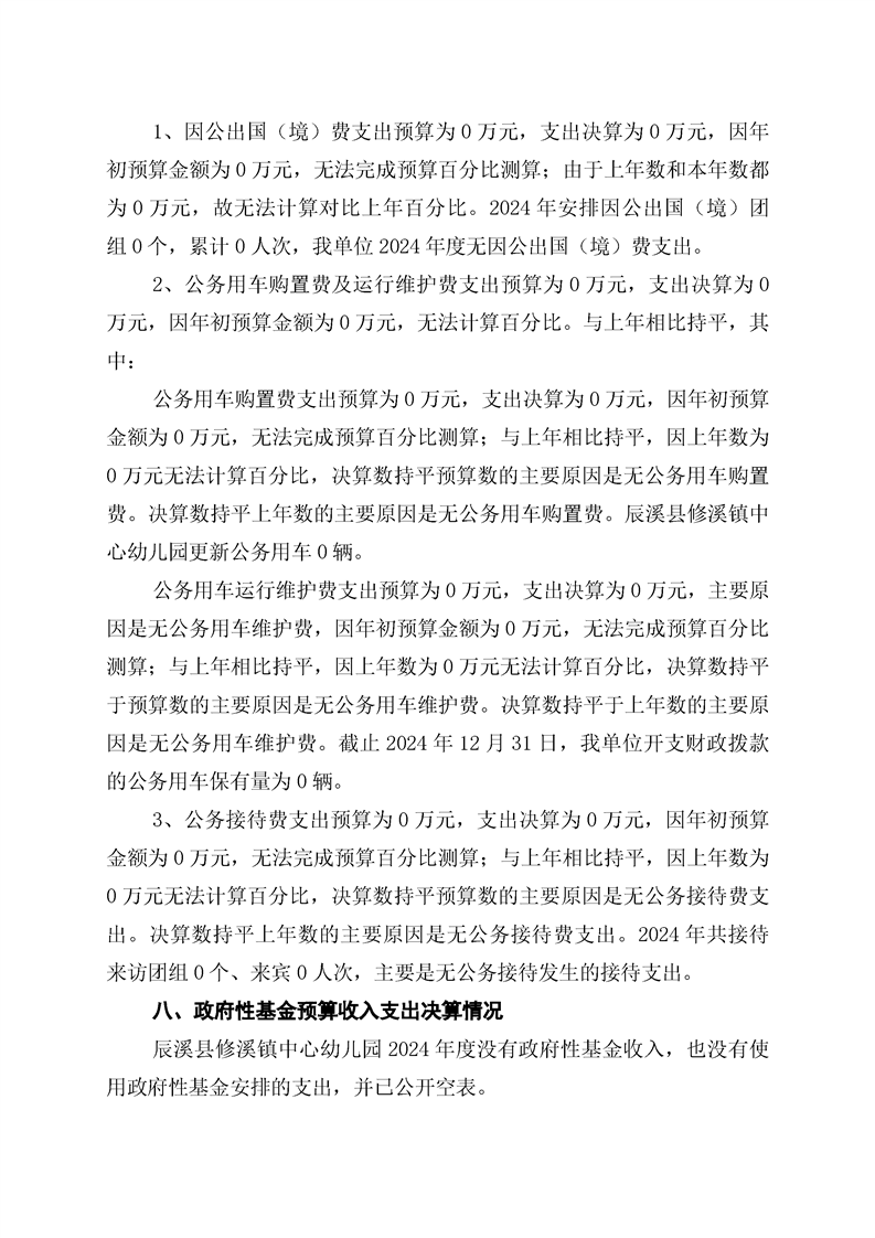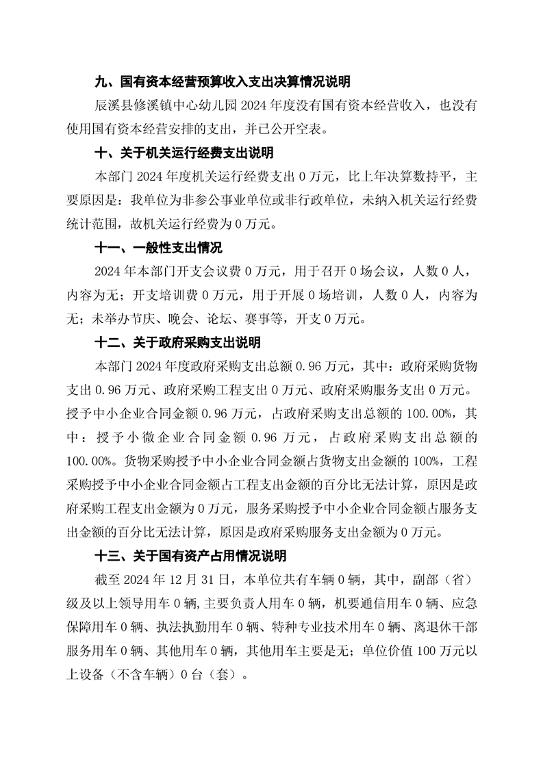 辰溪县修溪镇中心幼儿园2024年部门决算公开说明