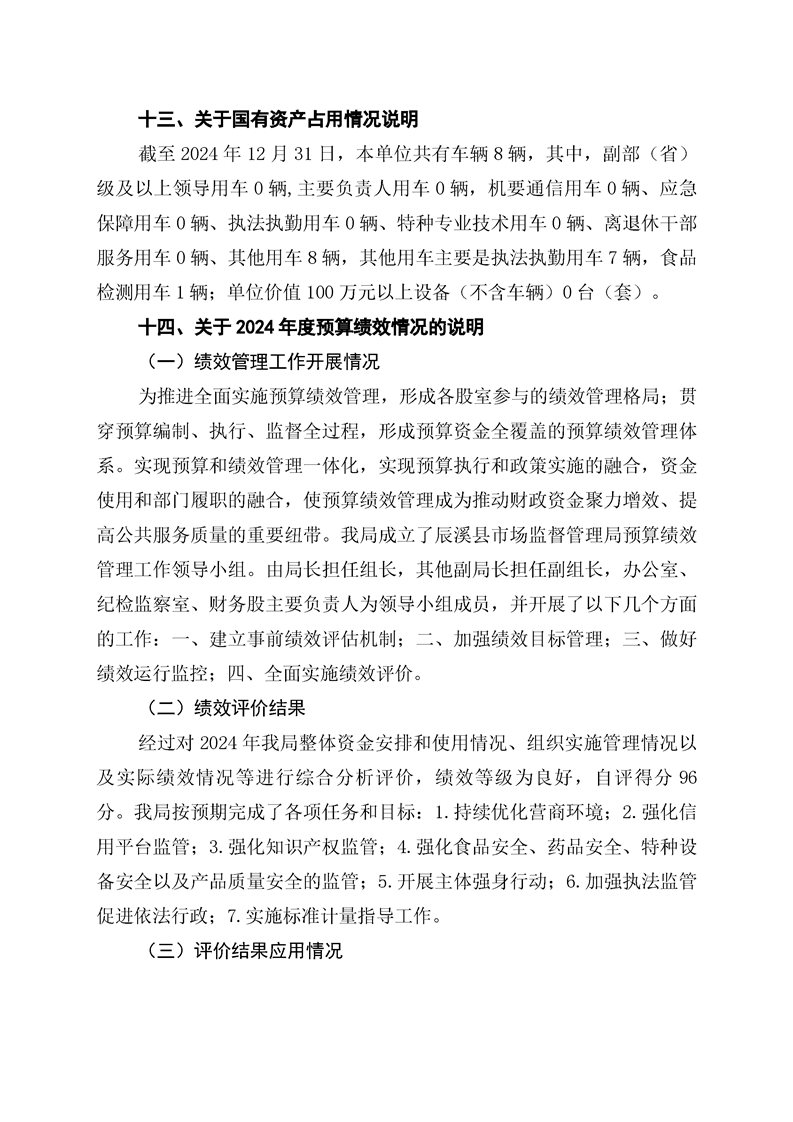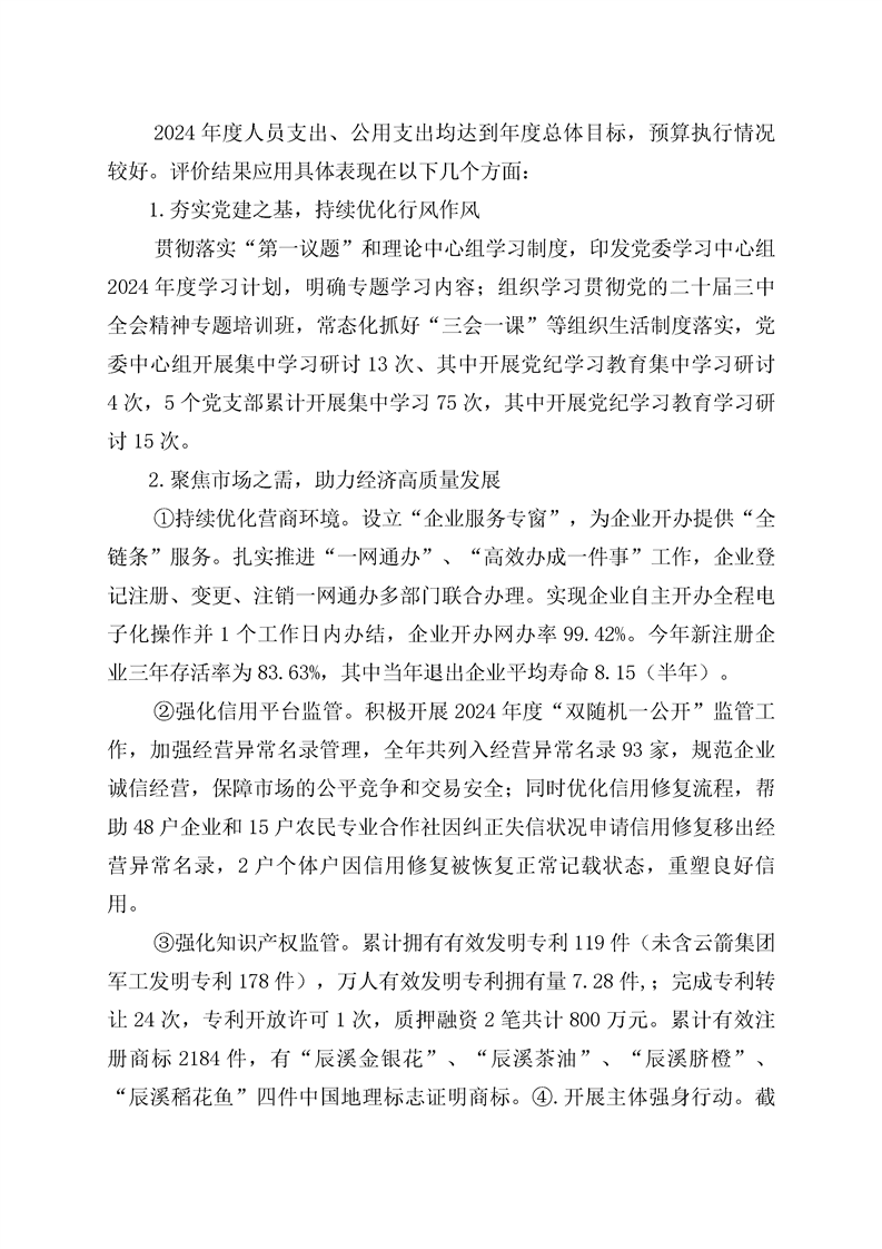 辰溪县市场监督管理局2024年部门整体支出绩效自评报告.doc