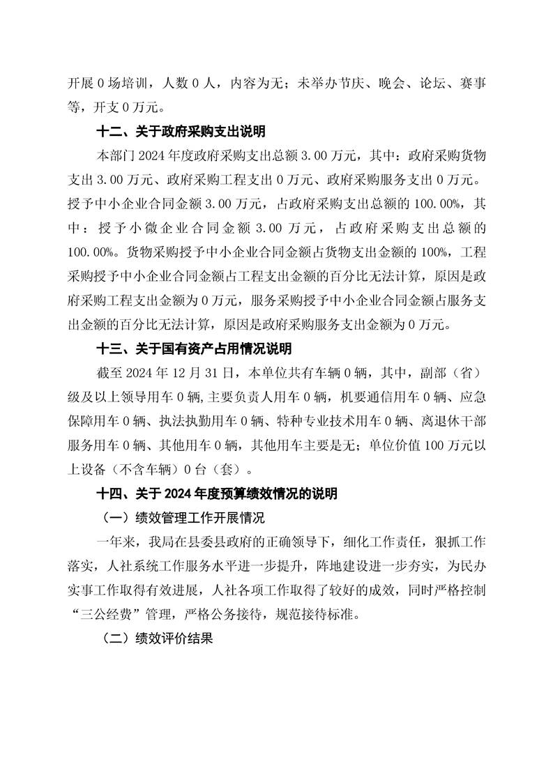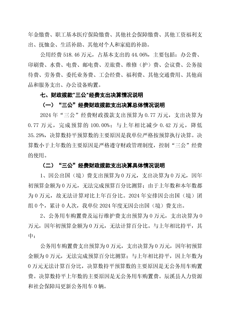 辰溪县人力资源和社会保障局2024年部门决算公开说明