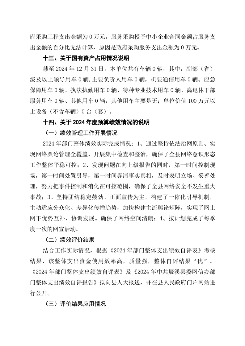 中共辰溪县委网络安全和信息化委员会办公室2024年部门整体支出绩效评价自评报告.docx