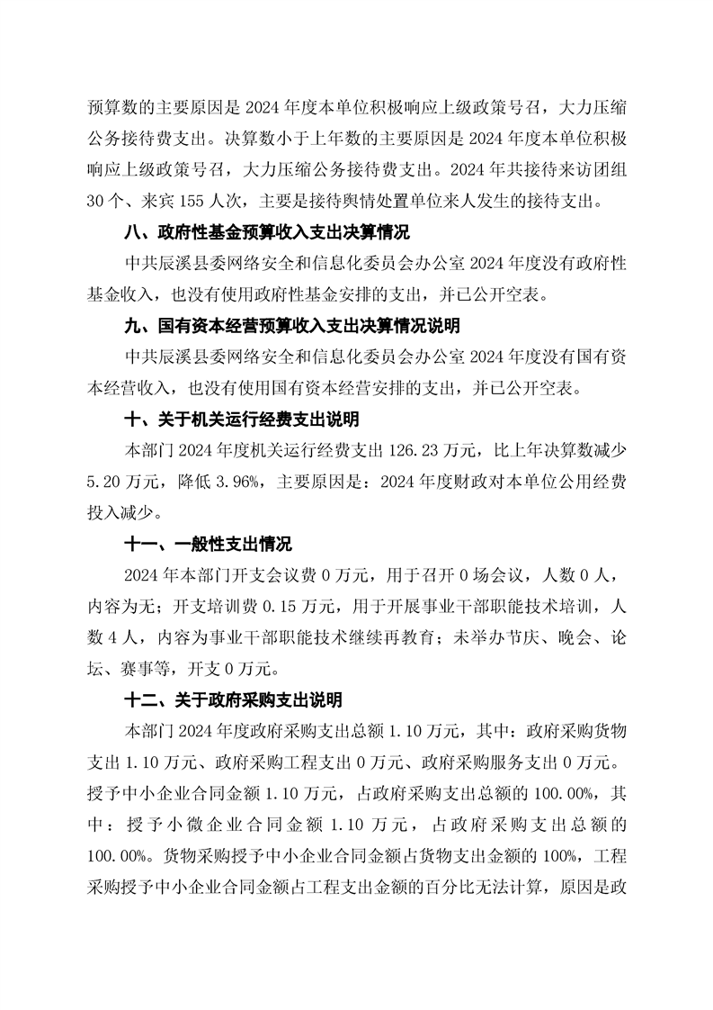 中共辰溪县委网络安全和信息化委员会办公室2024年部门决算公开说明
