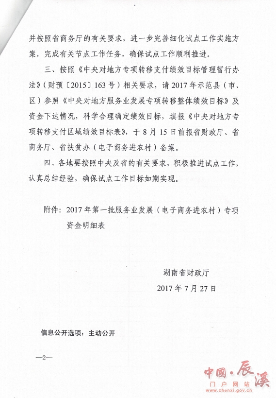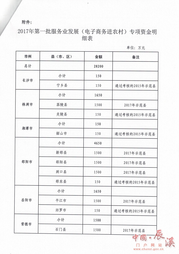 湖南省财政厅关于下达2017年第一批服务业发展(电子商务进农村)专项资金的通知