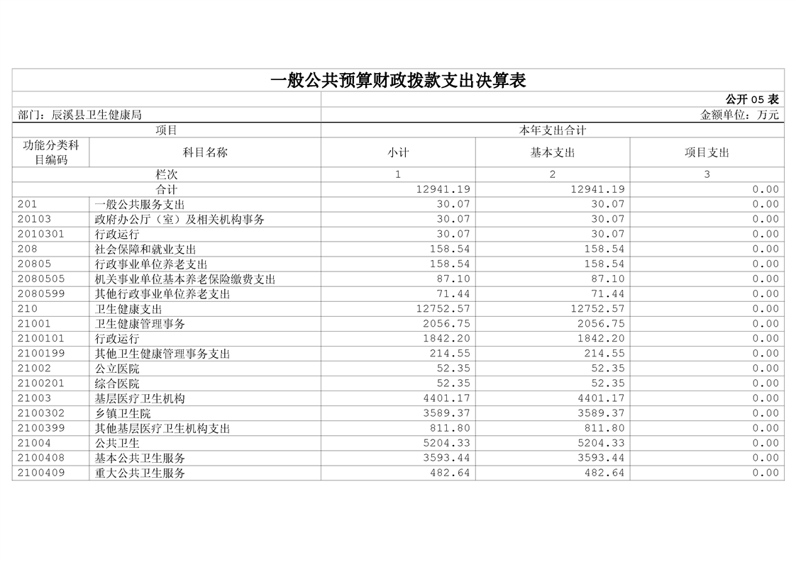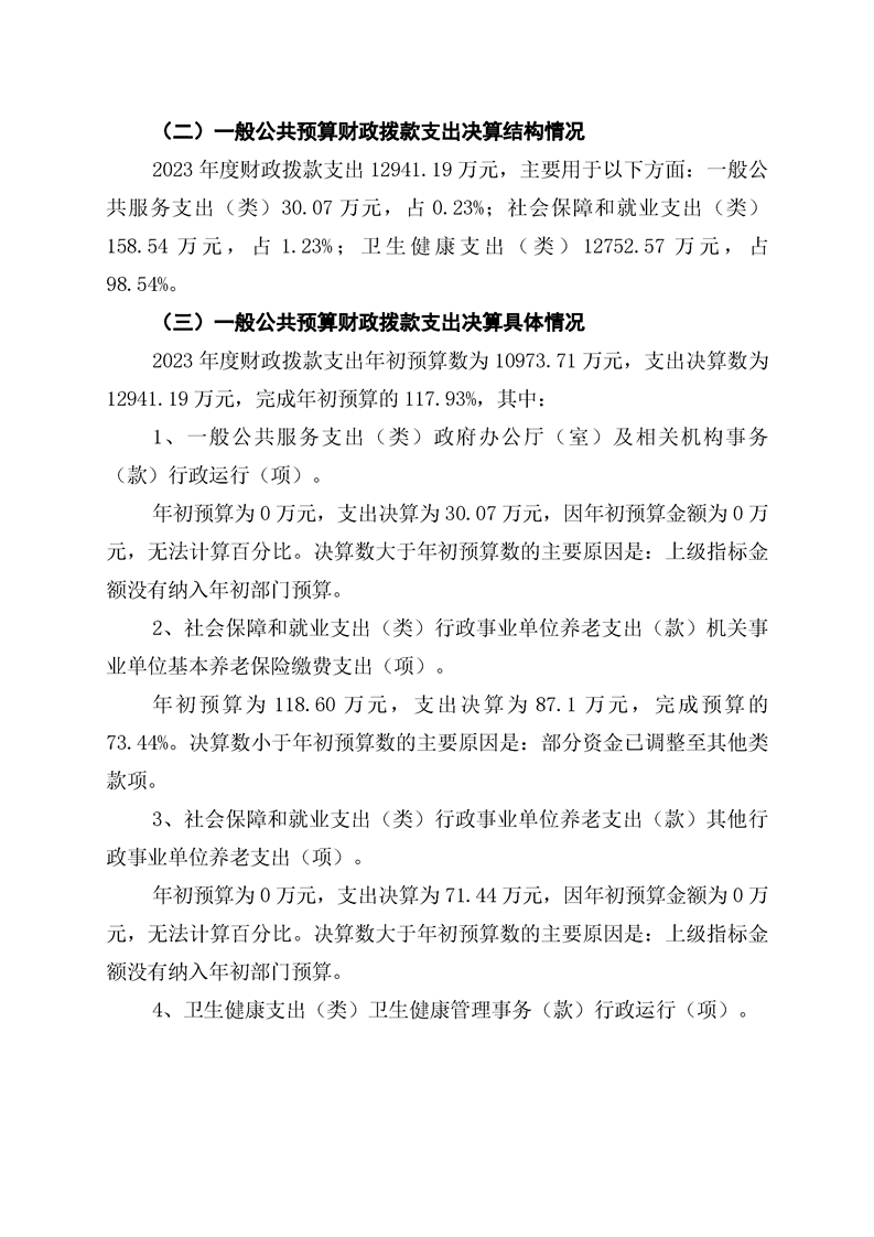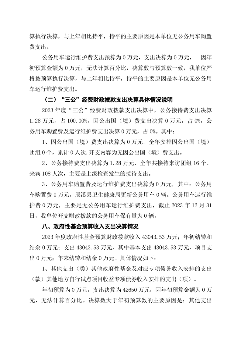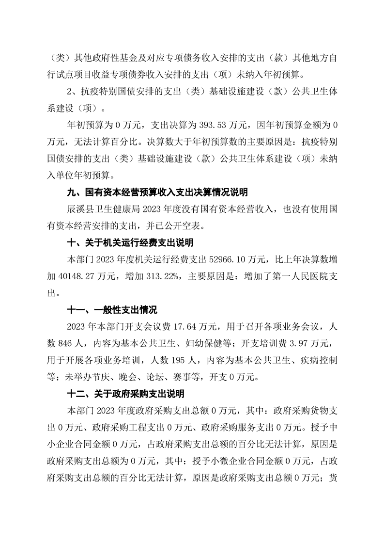 辰溪县卫生健康局2023年部门整体支出绩效自评报告.doc
