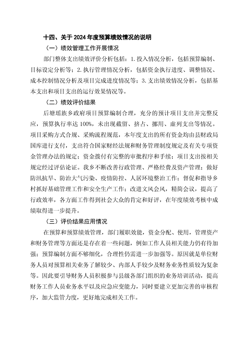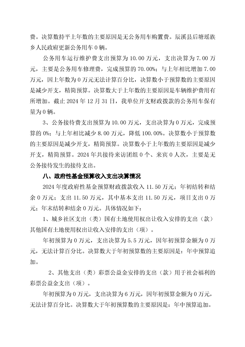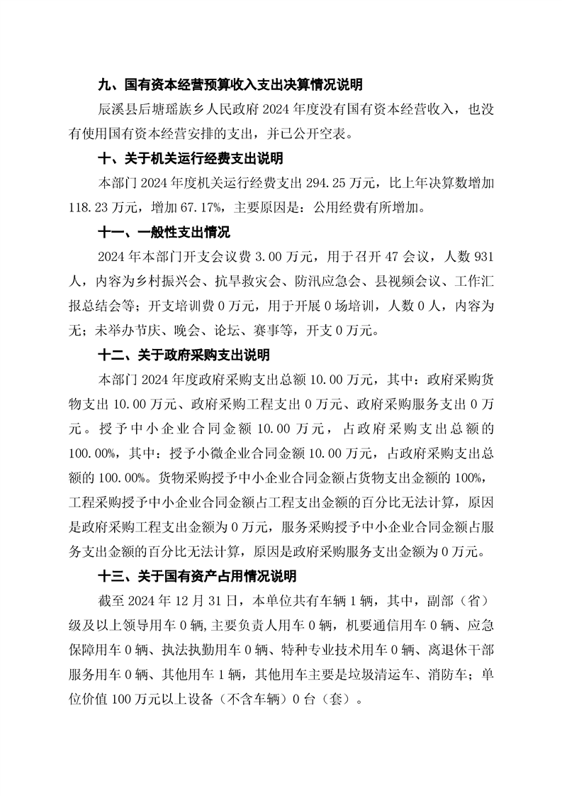 辰溪县后塘瑶族乡人民政府2024年部门决算公开说明