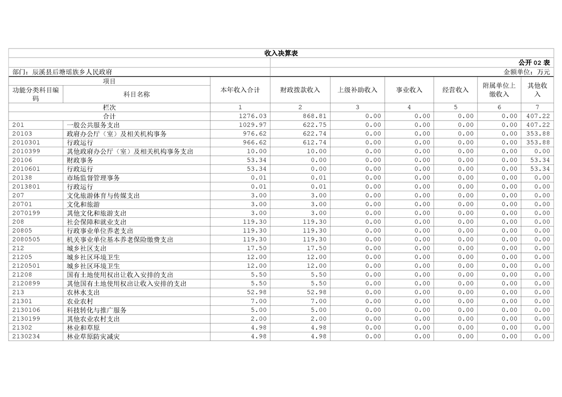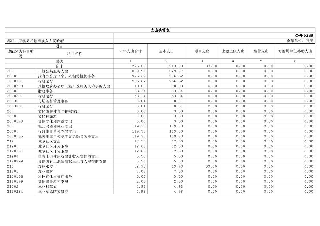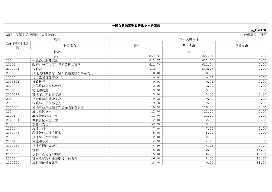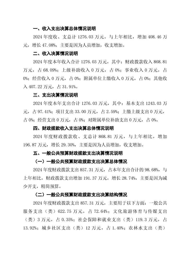 辰溪县后塘瑶族乡人民政府2024年部门决算公开说明