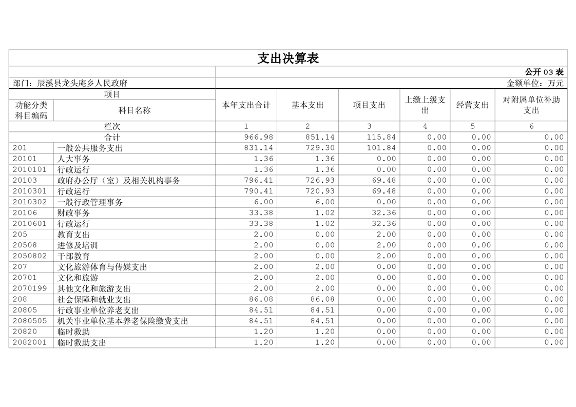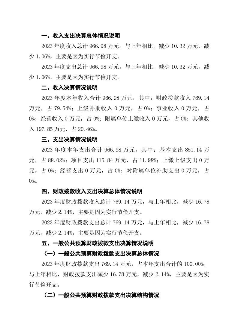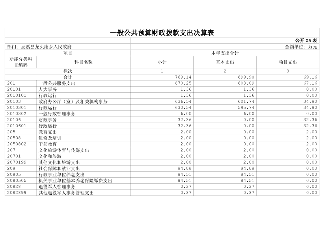 辰溪县龙头庵乡人民政府2023年部门决算公开说明