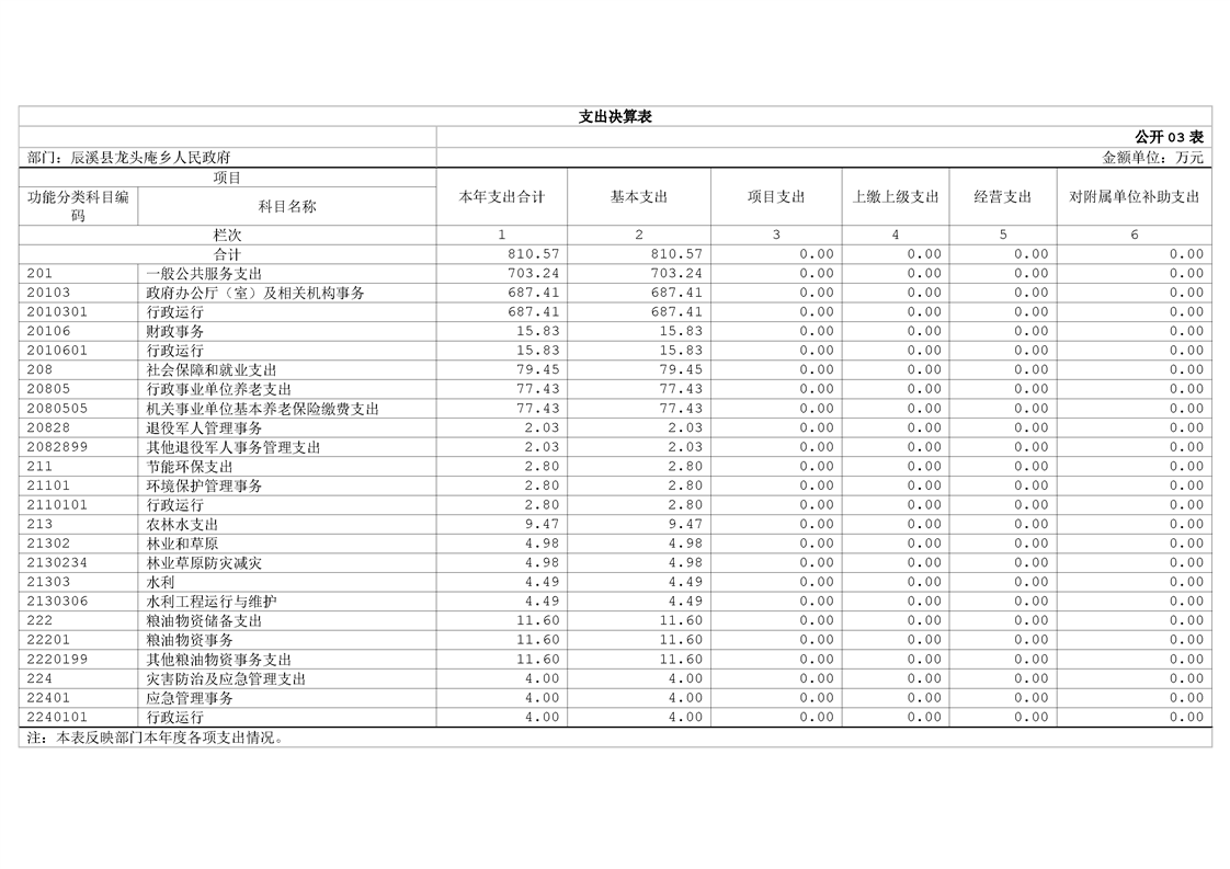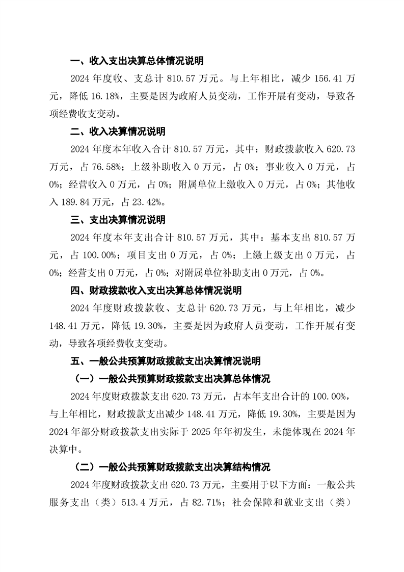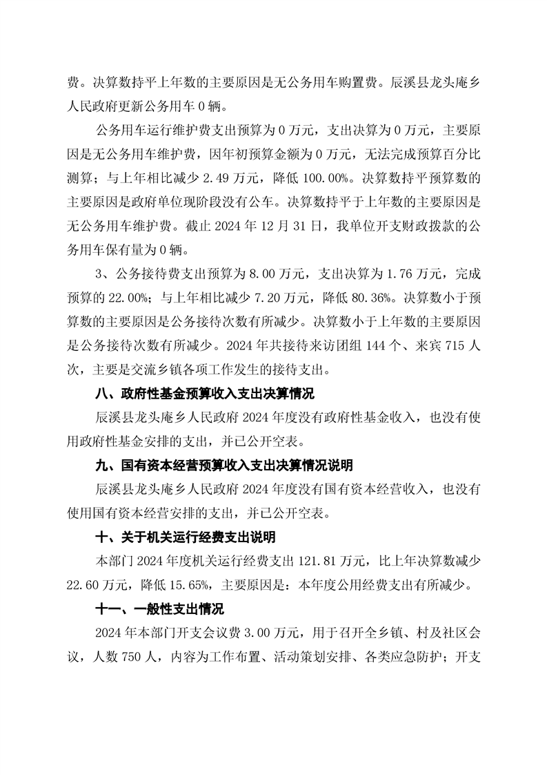 辰溪县龙头庵乡人民政府2024年部门决算公开说明