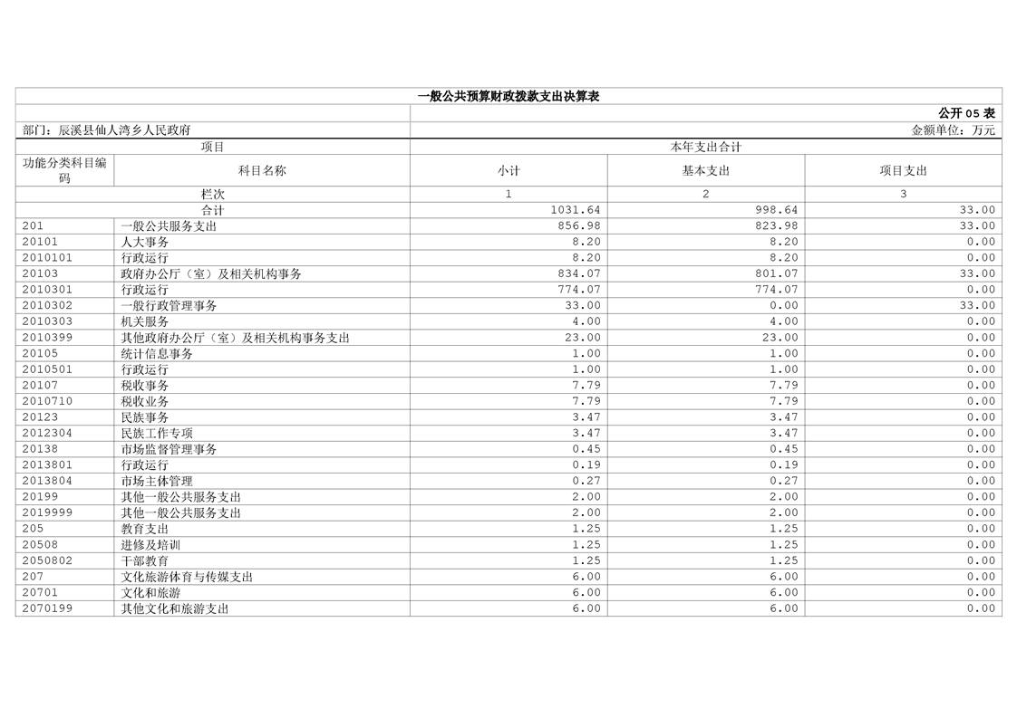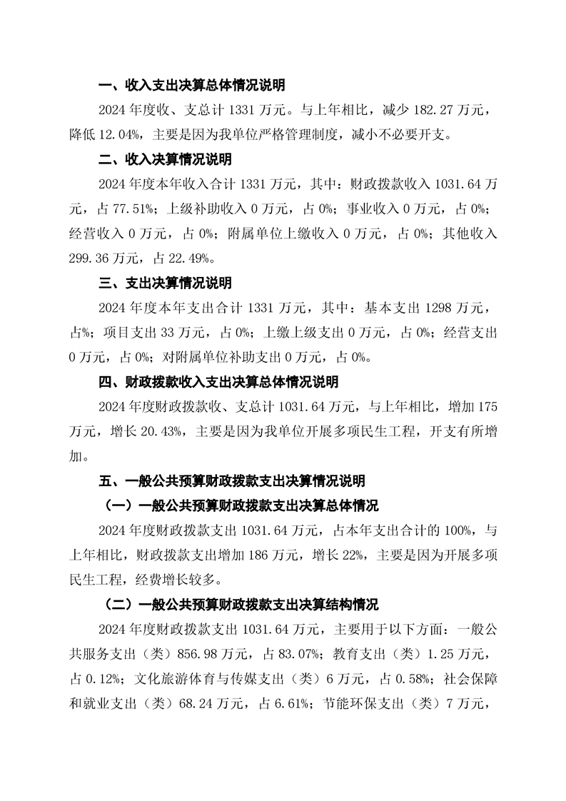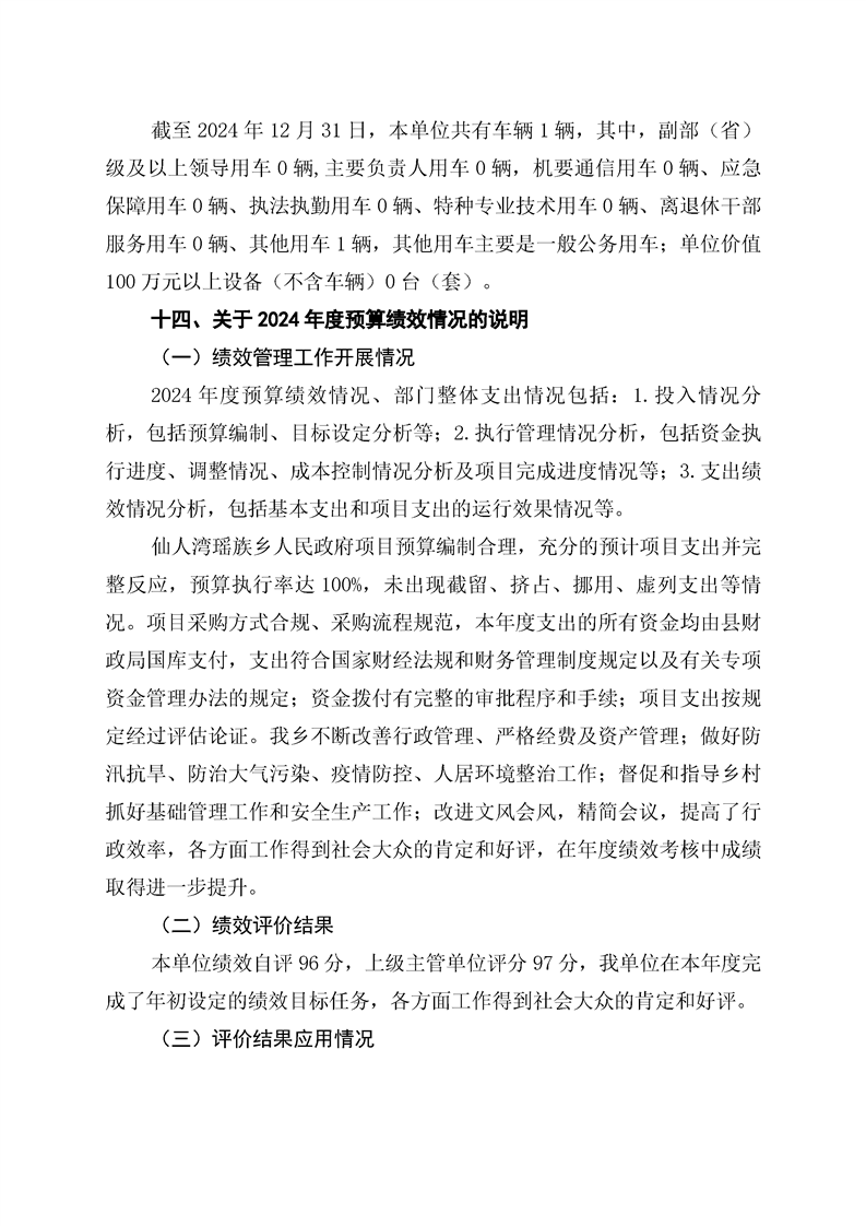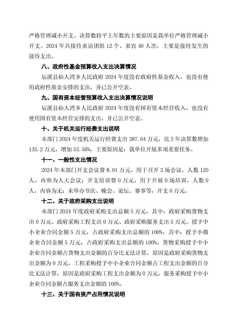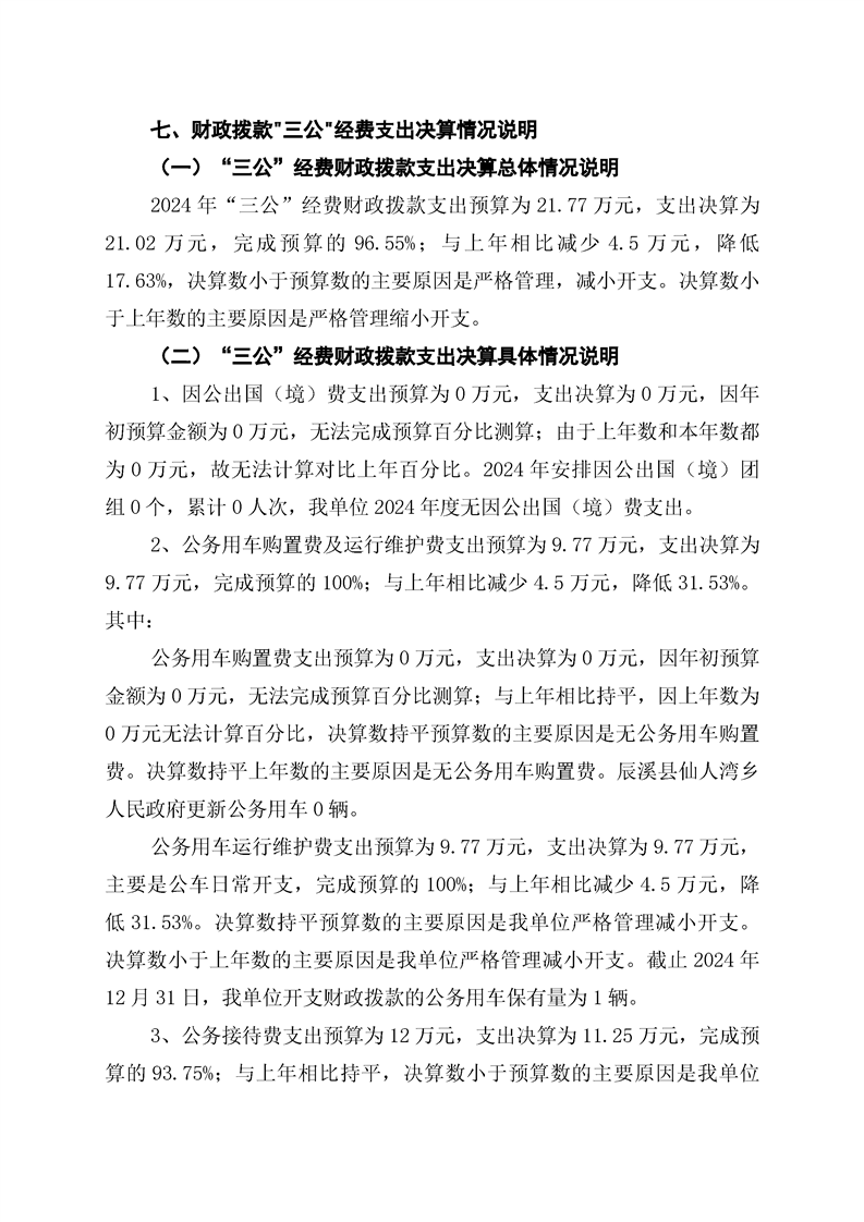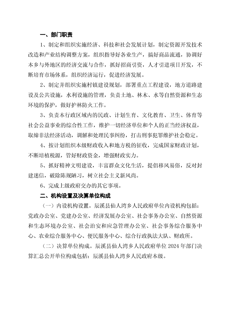 辰溪县仙人湾乡人民政府2024年部门决算公开说明
