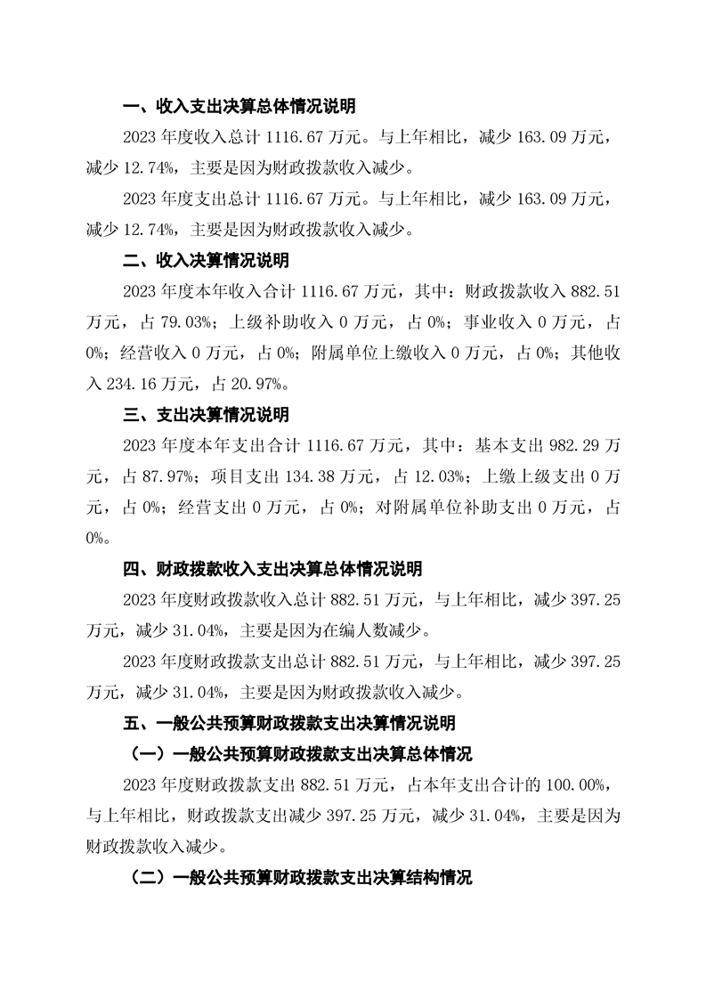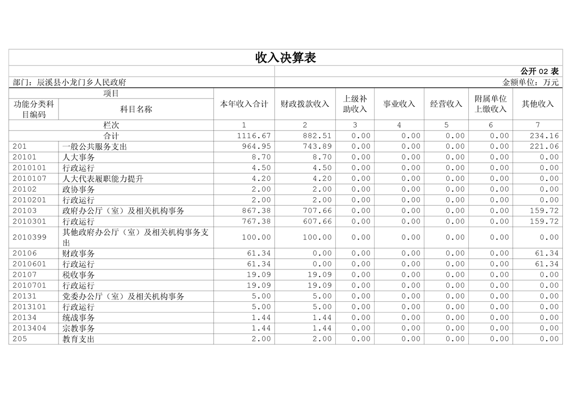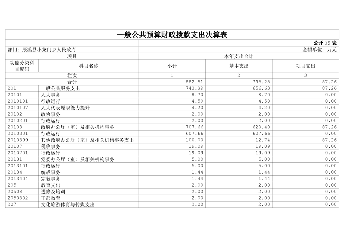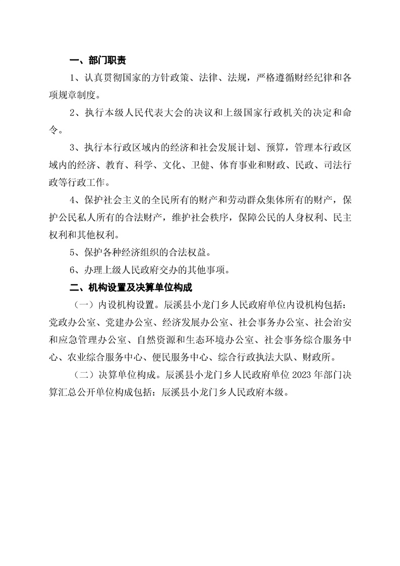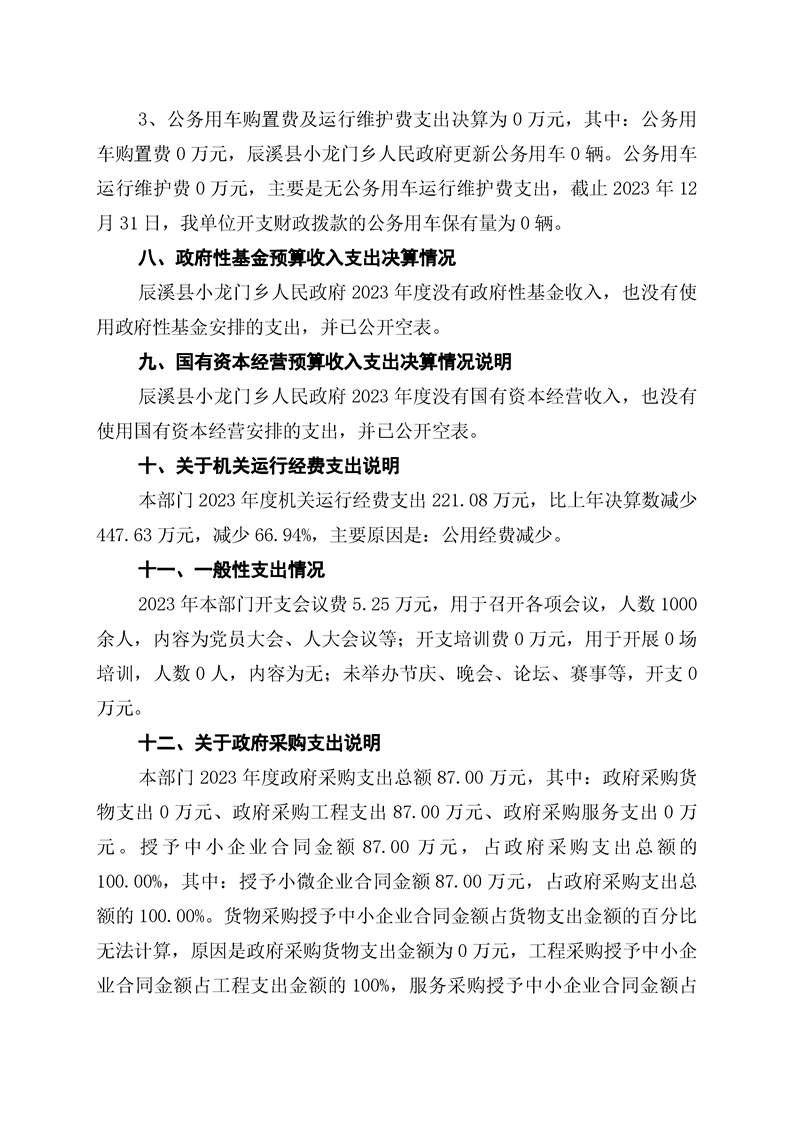 辰溪县小龙门乡人民政府2023年部门决算公开说明