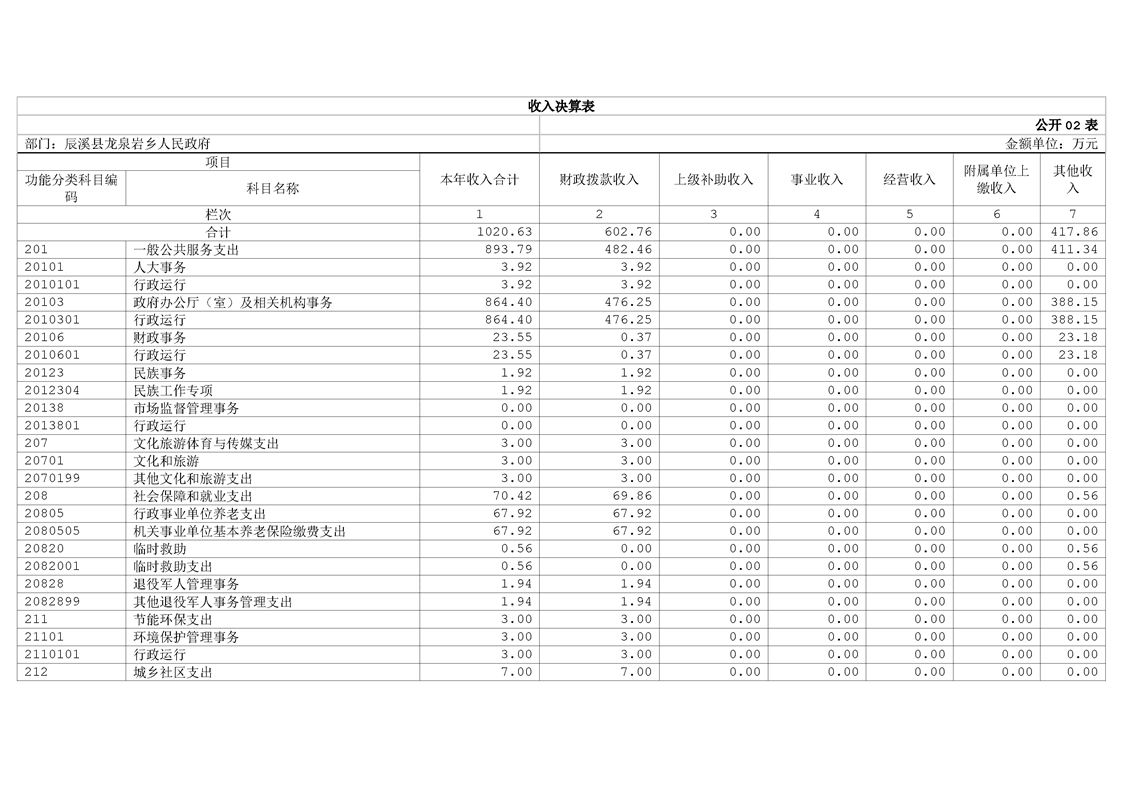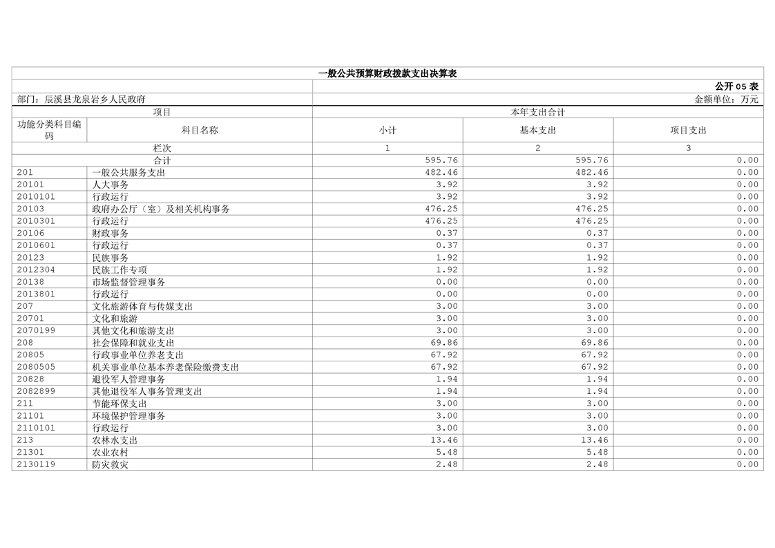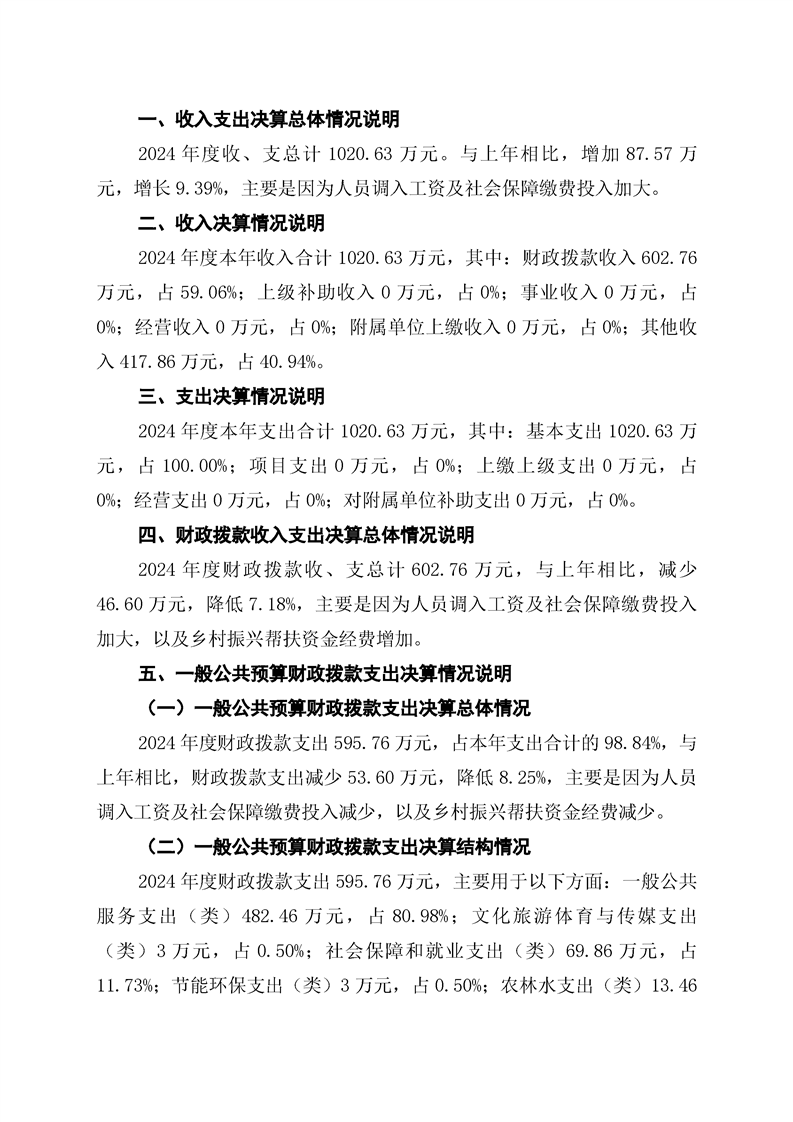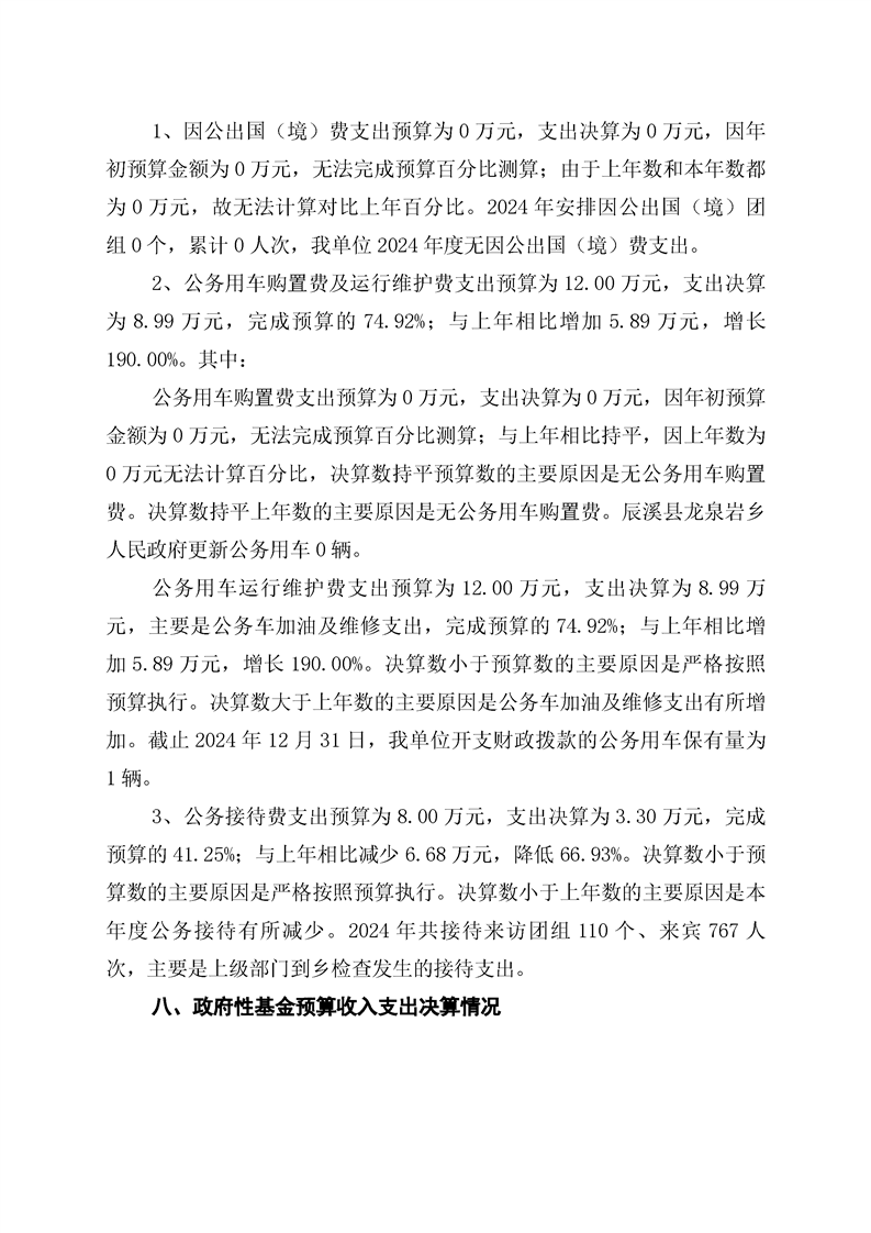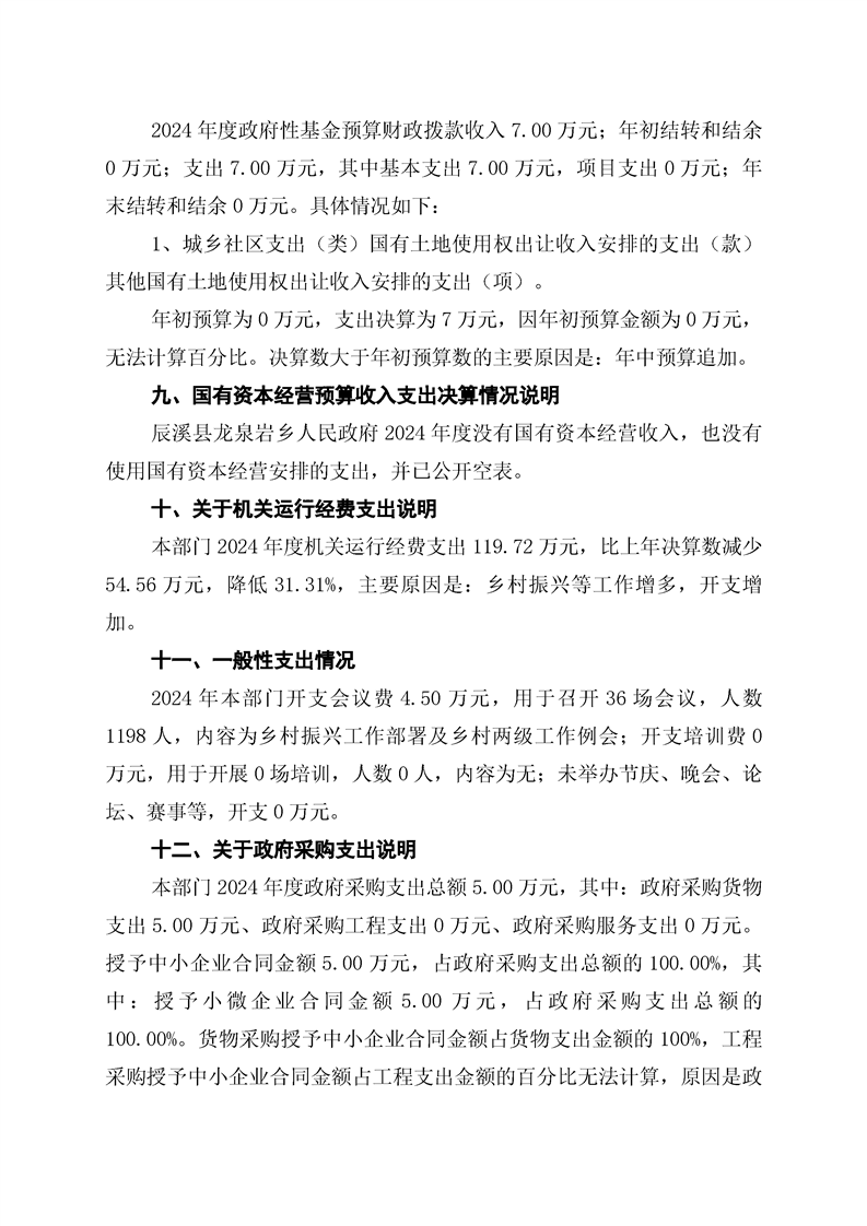 辰溪县龙泉岩乡人民政府2024年部门决算公开说明