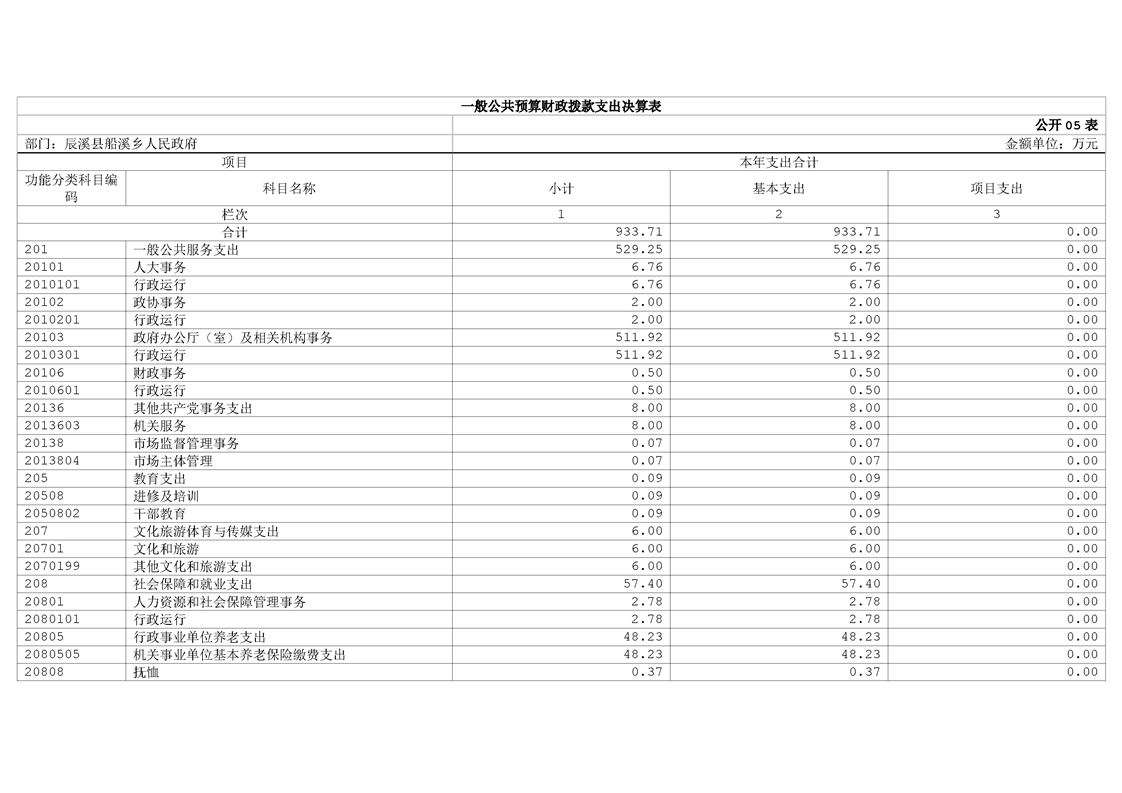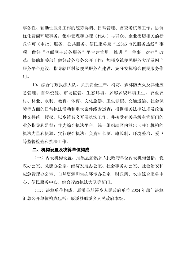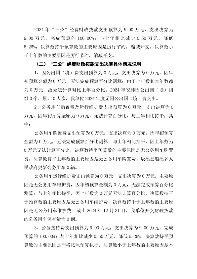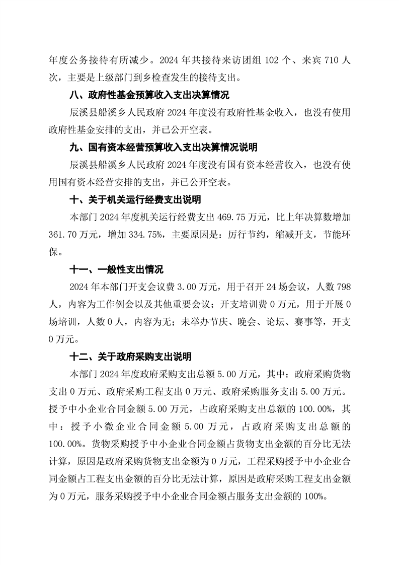 辰溪县船溪乡人民政府2024年部门决算公开说明