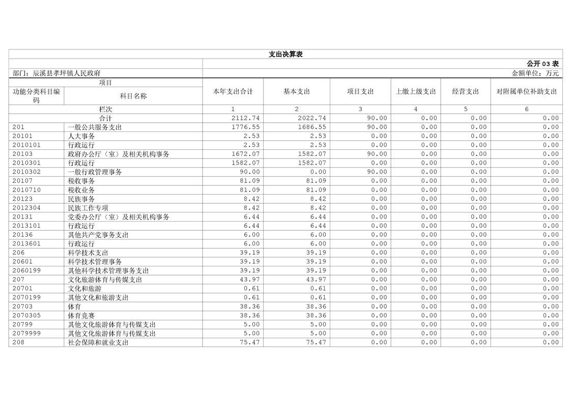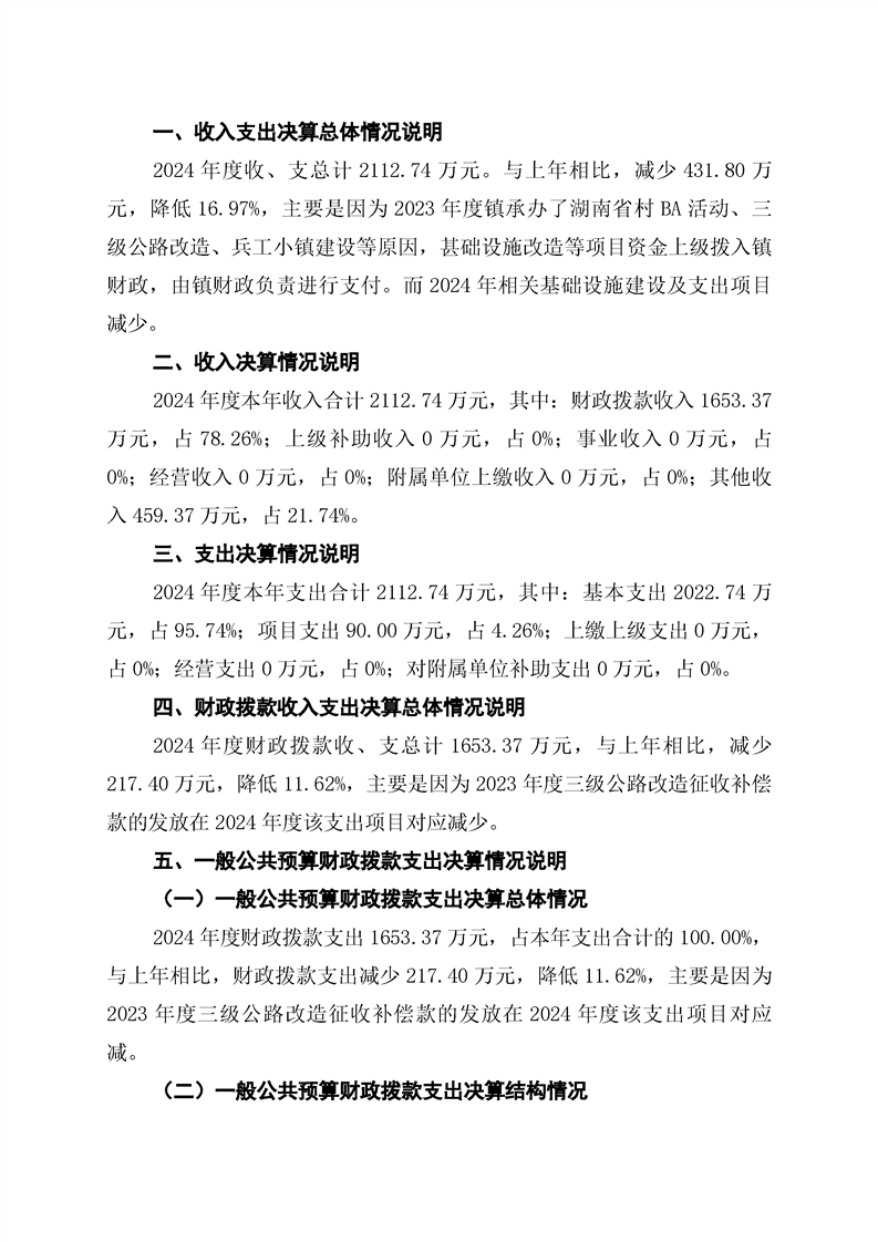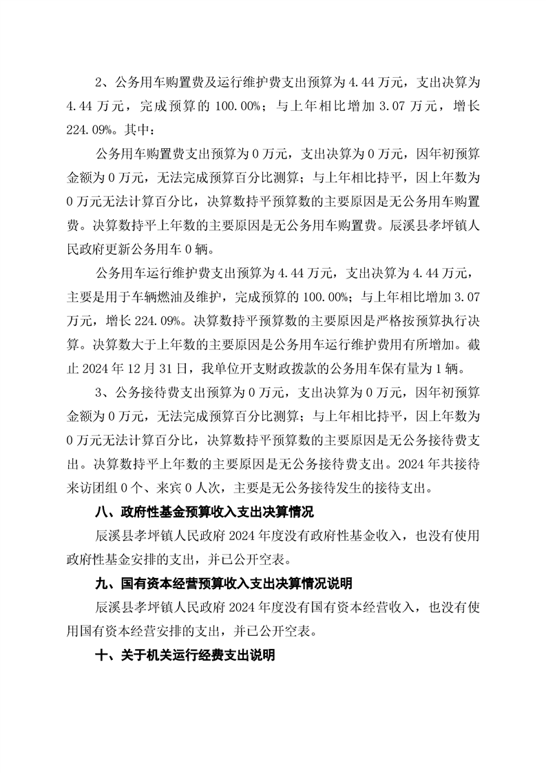 辰溪县孝坪镇人民政府2024年部门决算公开说明