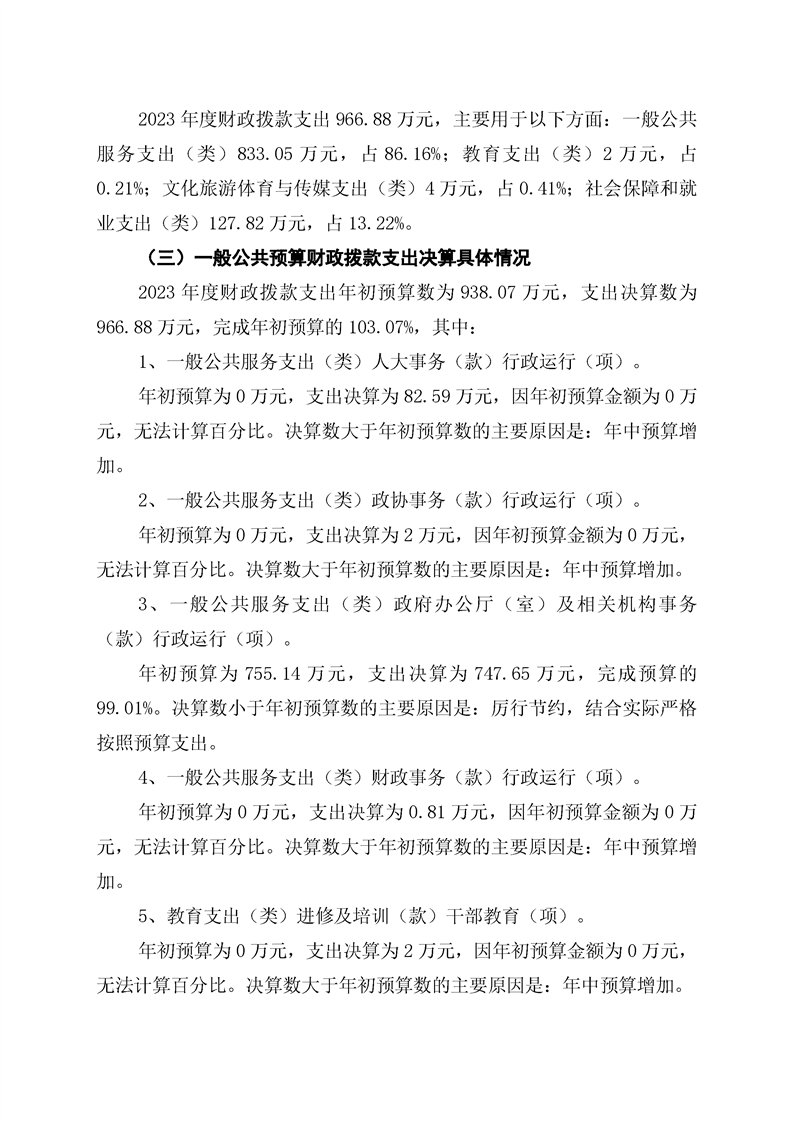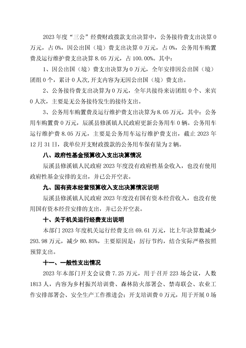 辰溪县修溪镇人民政府2023年部门决算公开说明