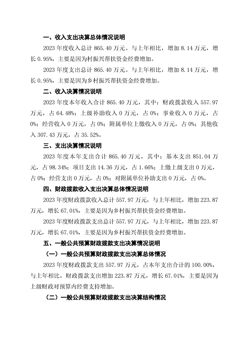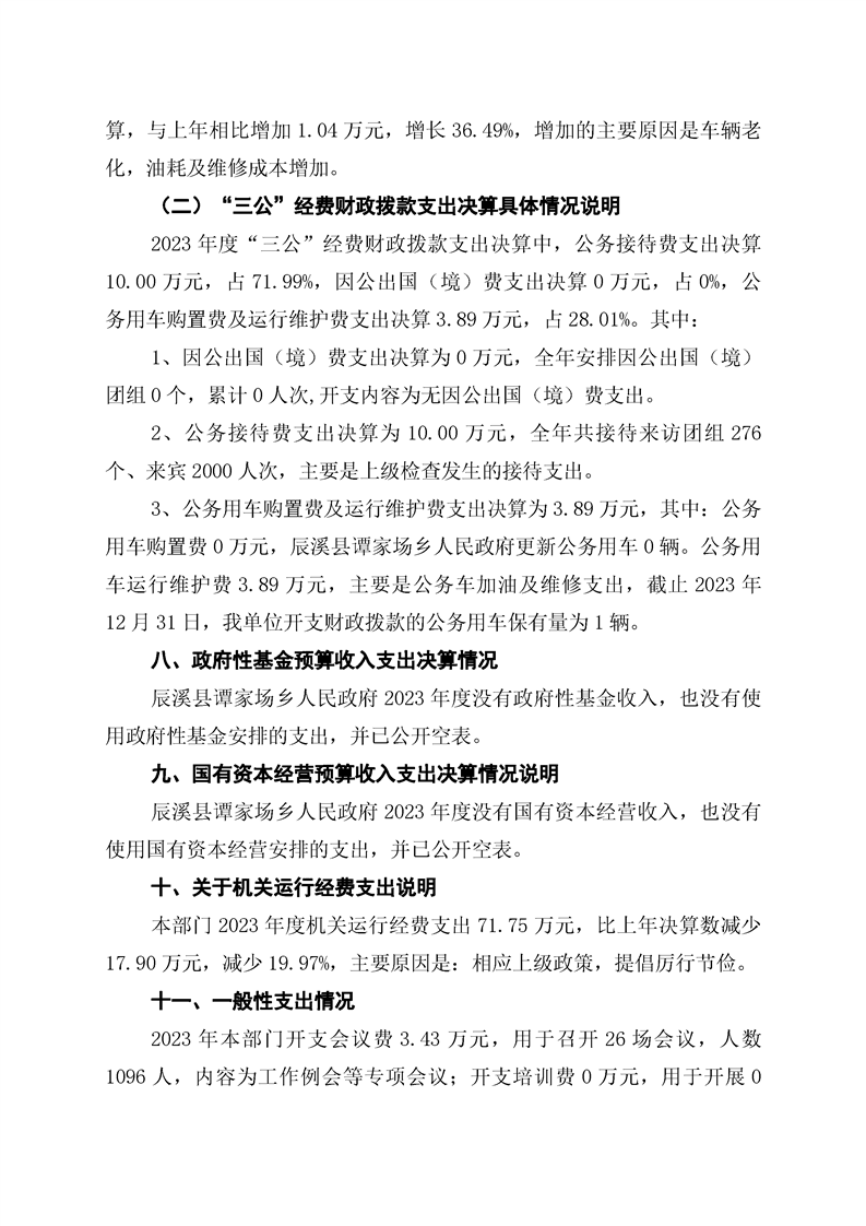 辰溪县谭家场乡人民政府2023年部门决算公开说明